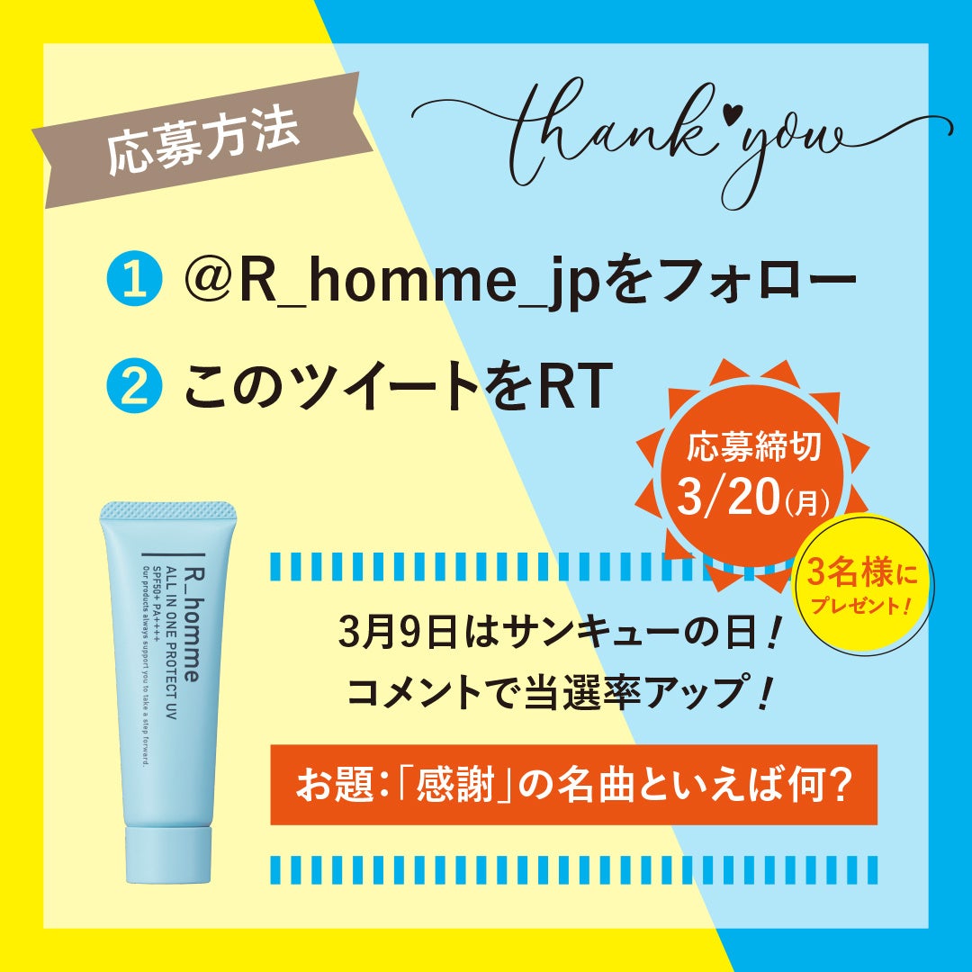 〈オールインワンプロテクトUV〉の新発売を記念して、公式Twitter(@R_homme_jp)ではプレゼントキャンペーンを実施中です!