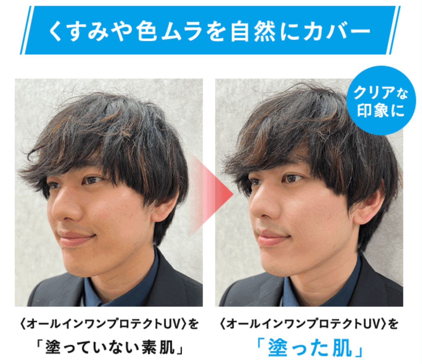 どんな男性の肌にも合うナチュラルベージュのカラーを採用。くすみや、ムラの目立たない美肌に整えます。さらに、シミや毛穴の目立ちにくいなめらかな肌に見せることができます。*1:メイクアップ効果による