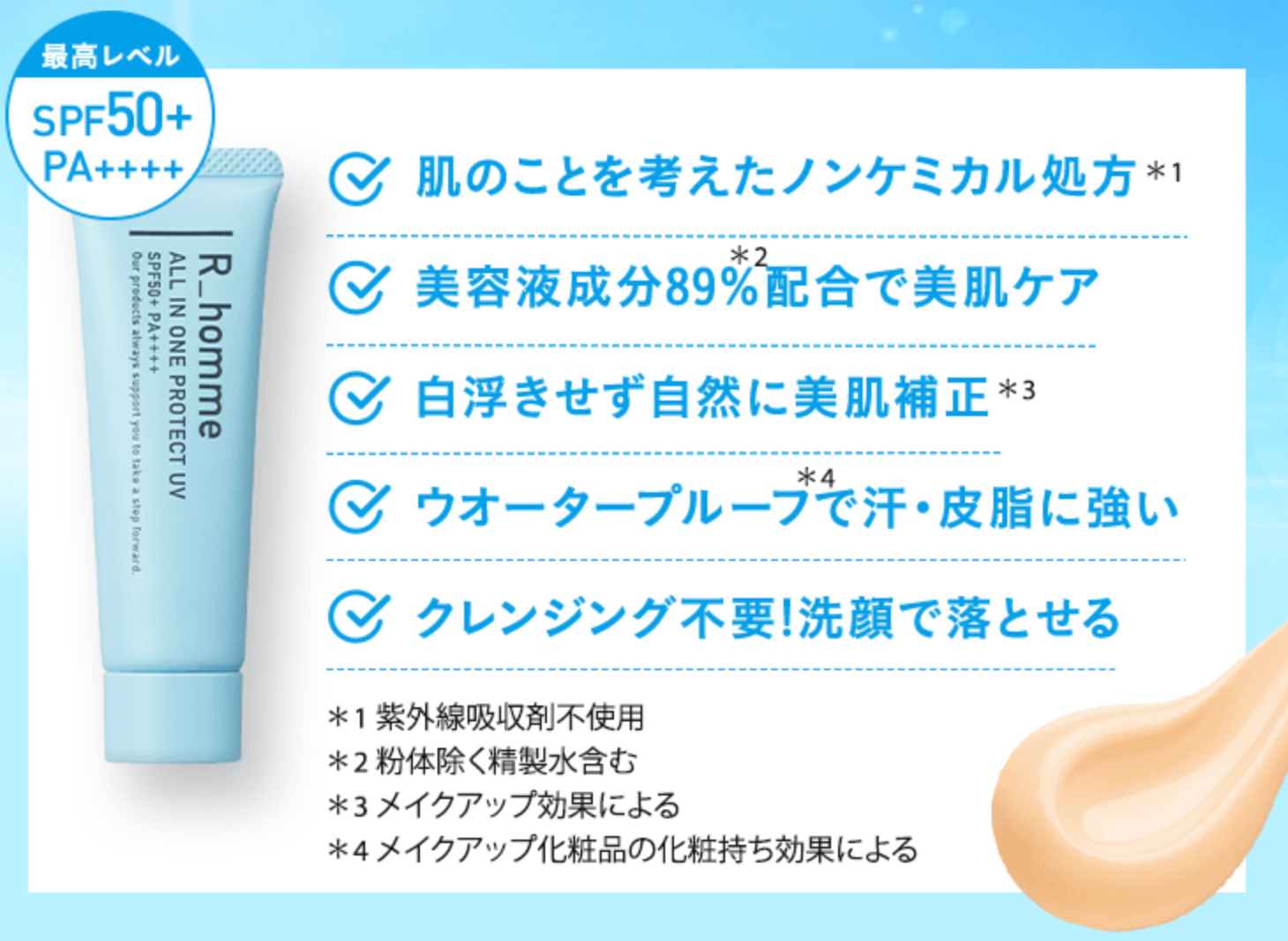 化粧品の開発および販売を行う株式会社ランクアップ(本社:東京都中央区銀座 代表:岩崎裕美子)の、メンズスキンケアブランド「R-homme(アールオム)」から、UV対策をしながらスキンケアを叶える〈オールインワンプロテクトUV〉を、2023年3月9日より本数限定で、新発売いたします。