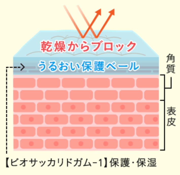 ベタつかずにサラッと軽やかなつけ心地は、イヌリンを高配合することで実現し、うるおい保護ヴェールが乾燥をブロックします。肌に近い保湿成分(ビオサカッリドガム-1)が肌表面に膜を作り、たっぷりの美容液成分を逃しません。さらに外部の刺激や乾燥から肌を守ります。