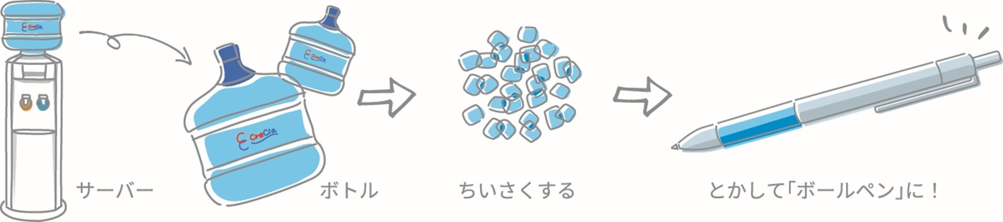 宅配水「クリクラ」のナックとTBM、マテリアルリサイクルを通じて使用済みの空きボトルをボールペンに再製品化