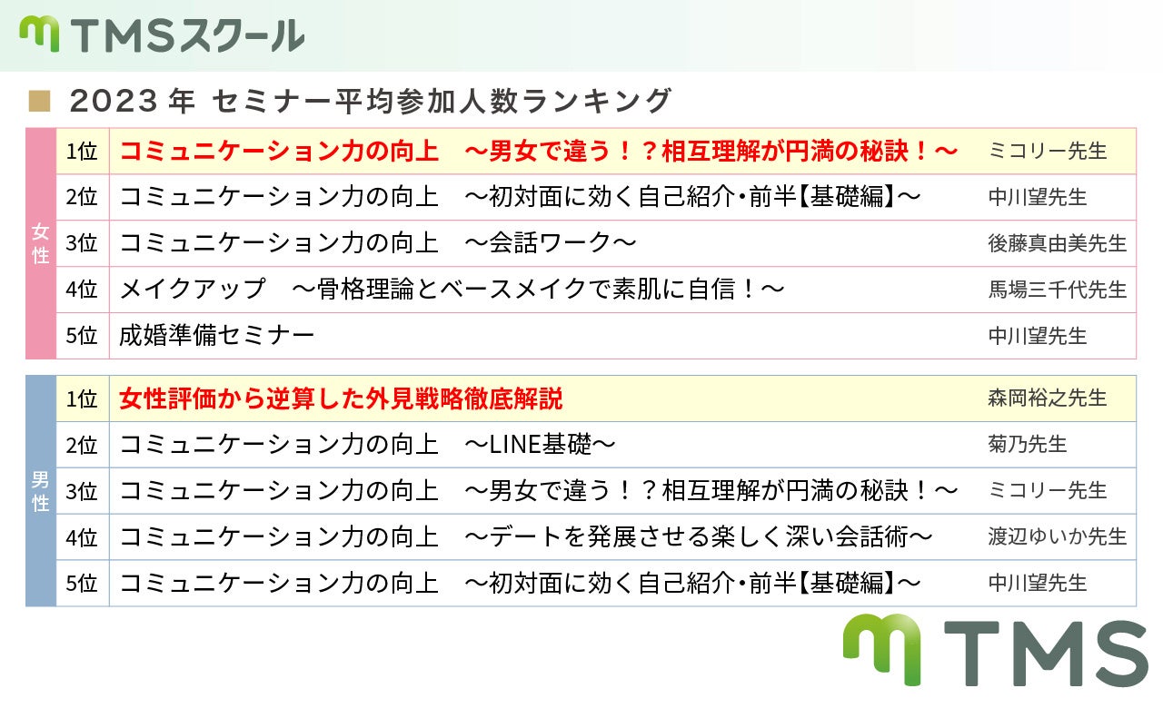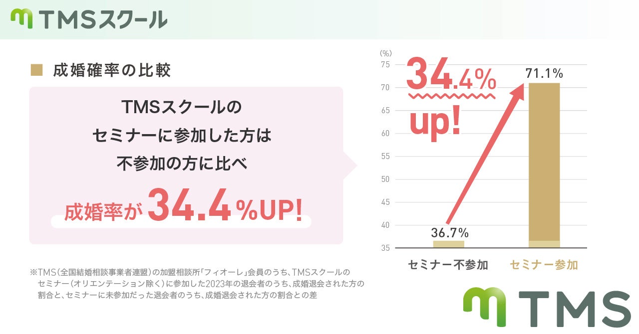 婚活セミナー「TMSスクール」2023年利用者の成婚確率が非利用者に比べ34.4%アップ