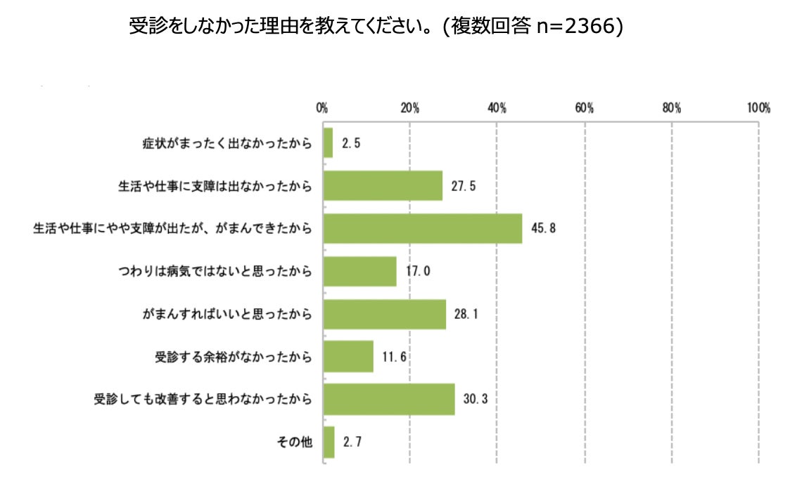・産婦人科を受診しなかった理由は「生活や仕事にやや支障はでたががまんできたから」