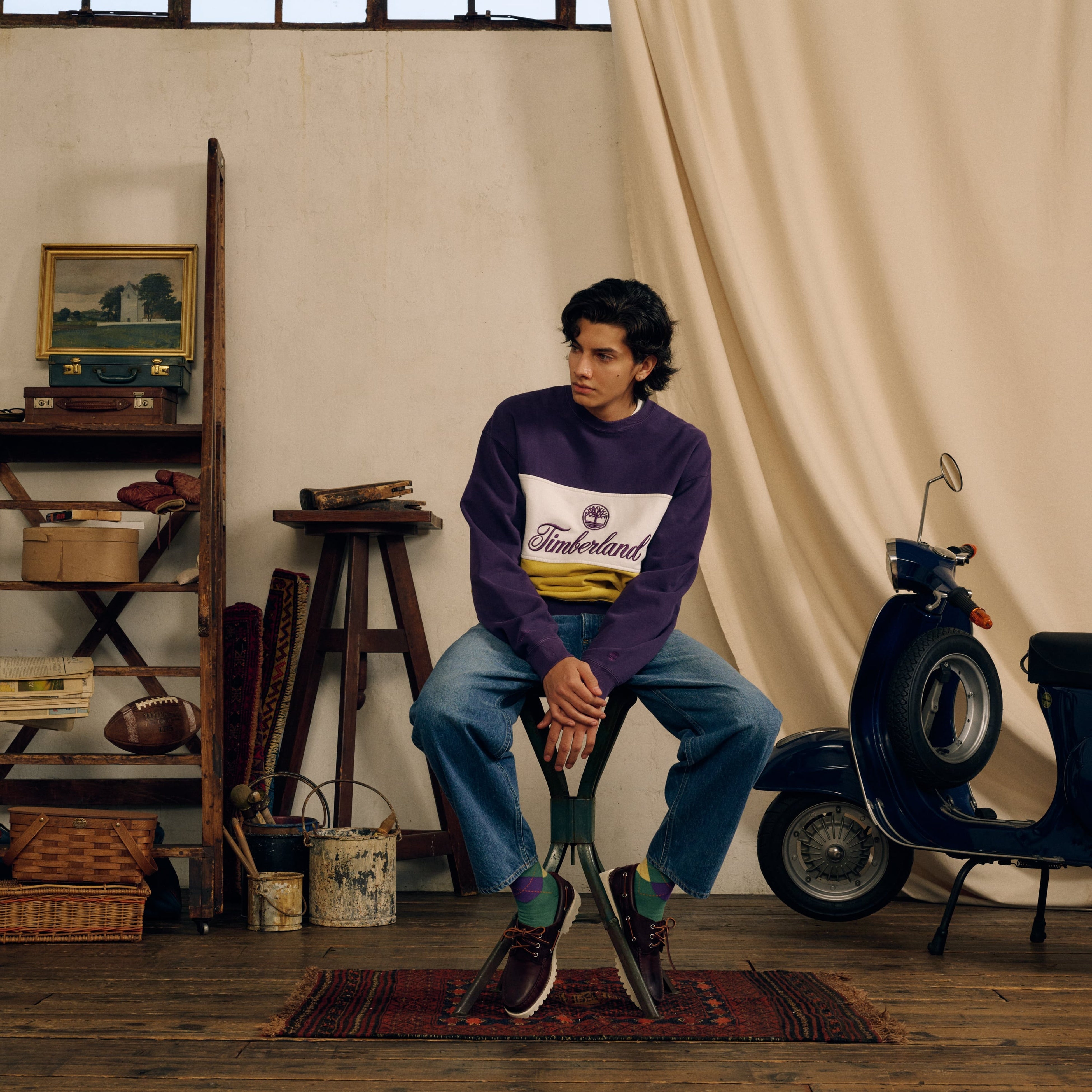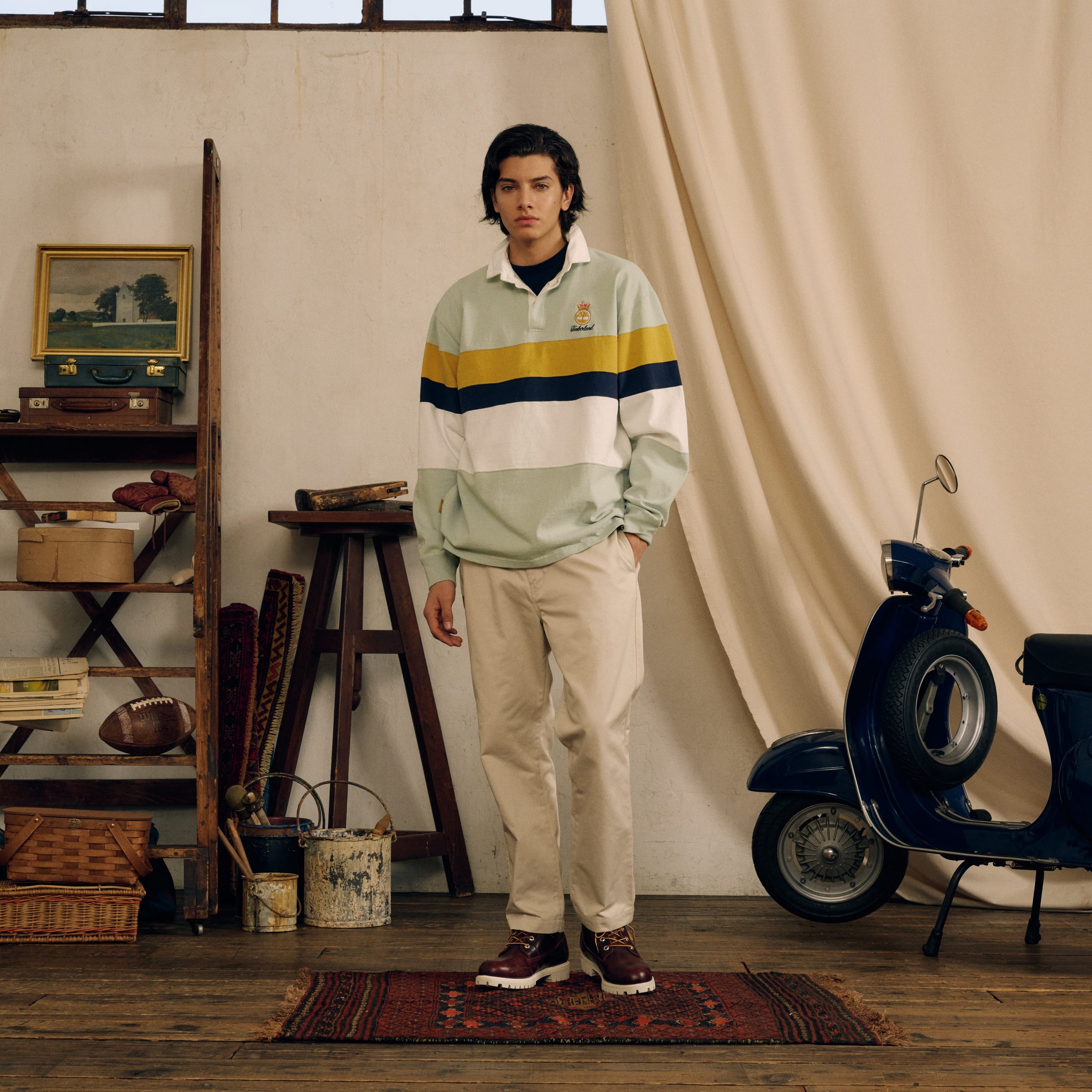 第2弾となるSS24シーズンテーマは “ 86 MILAN’’において、当時の若者の流行を席捲した“PANINARO”。1986年当時、イタリア・ミラノの街は、ポップなカラーダウンにジーンズ、そしてロールアップされた足元には、アーガイルチェックのソックスに「ティンバーランド」アイコンシューズである6インチプレミアムウォータープルーフブーツや3アイクラシックラグのデッキシューズを合わせ、スクーターに乗ってパニーニを頬張る、そんな若者達で溢れていました。