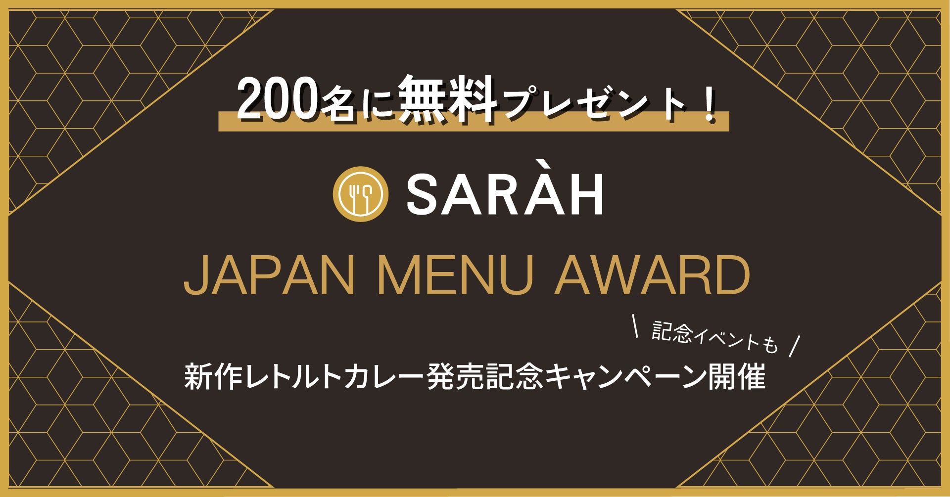 おいしい!が増えるグルメアプリ「SARAH」を運営する、株式会社SARAH(東京都千代田区、代表取締役 髙橋洋太)は、2024年2月12日に、レトルトカレーブランド「JAPAN MENU AWARD」シリーズ 新作”トマトとハーブのポトフカレー”がハウス食品より発売されたことを記念し、”「JAPAN MENU AWARD」シリーズ 新作発売記念キャンペーン”を開催することをお知らせいたします。