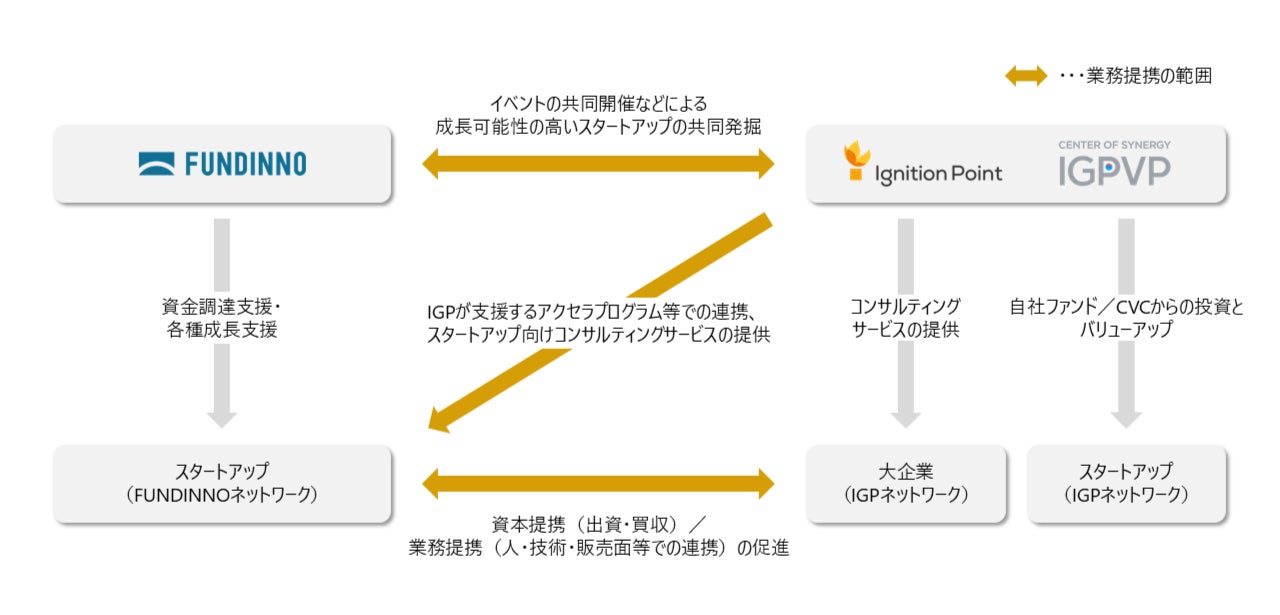 FUNDINNOのプラットフォームを通じて資金調達を行った有望なスタートアップに対し、イグニション・ポイントが有する大企業ネットワークへのアクセス機会を提供します。