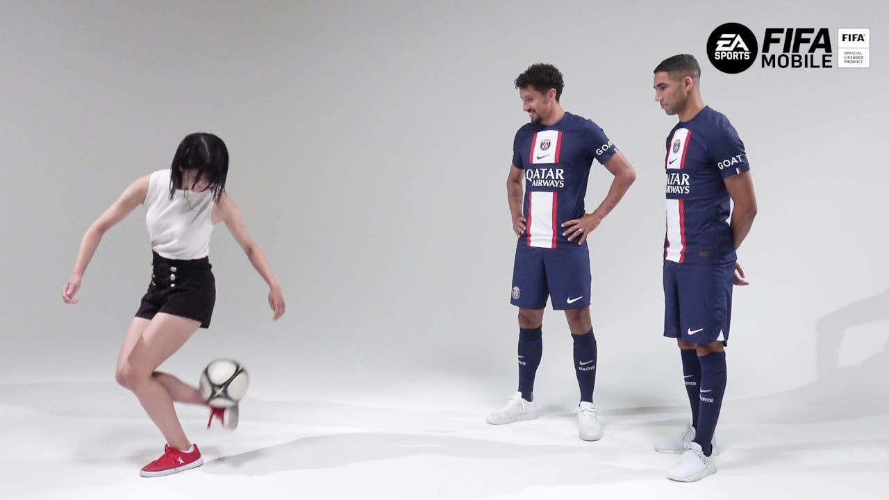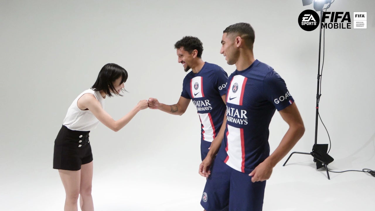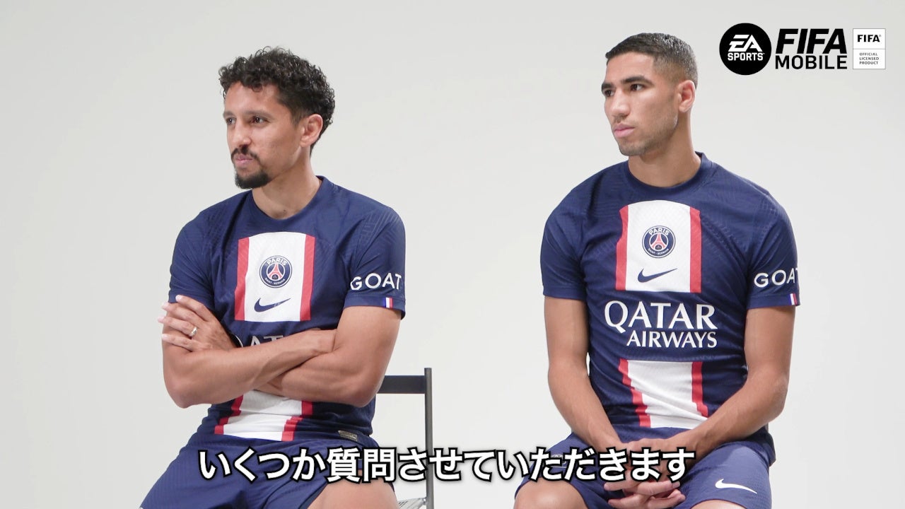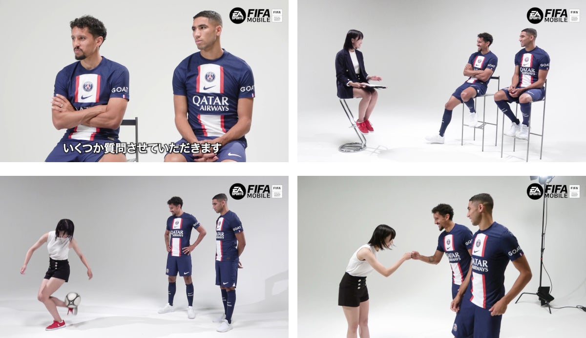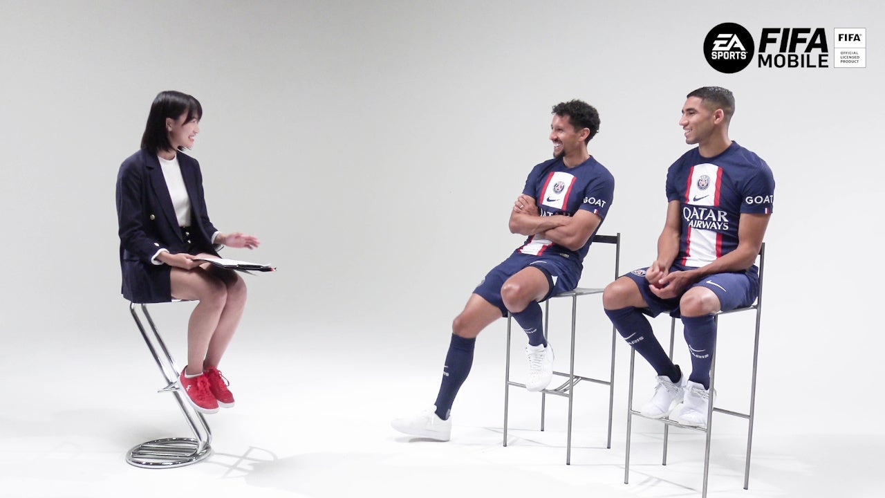 スペシャルムービーには、先日ジャパンツアーのため来日したパリ・サン=ジェルマン(Paris Saint-Germain)から、チームの主力選手として活躍するブラジル代表のマルキーニョス選手、モロッコ代表のアクラフ・ハキミ選手が登場。『FIFA MOBILE』公認プレイヤーである女優 眞嶋優さんがインタビュアーとして、『FIFA MOBILE』のゲーム内で反映してほしい自分の能力や、一緒にプレイしたい選手などについてお聞きしました。
