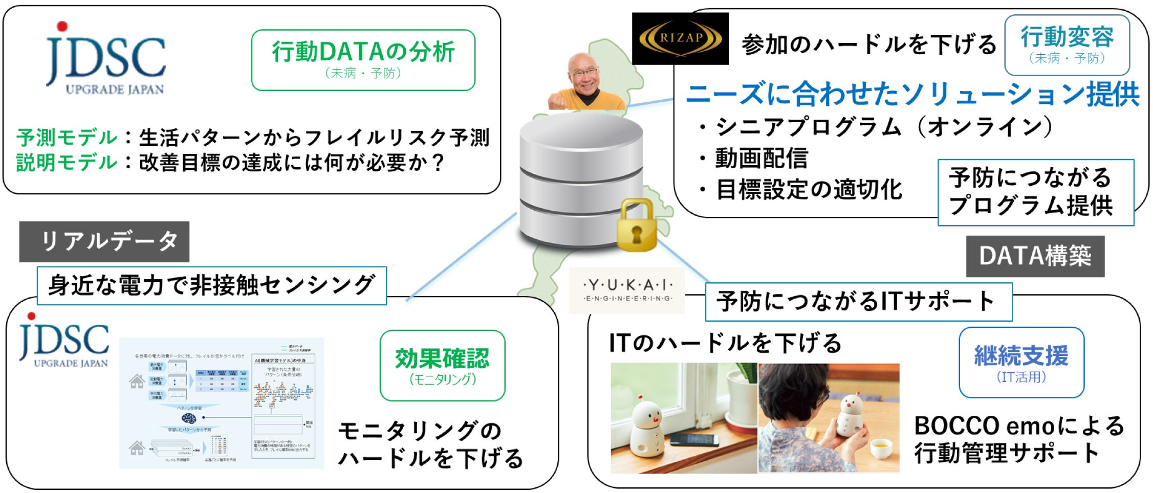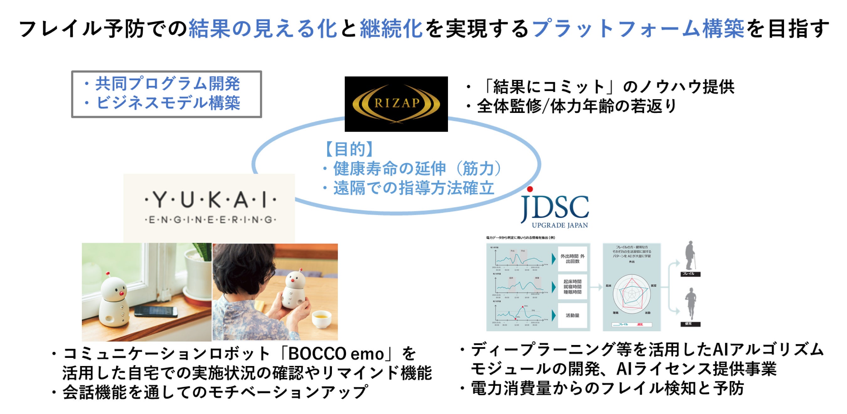 RIZAP・JDSC・ユカイ工学の3社合同で健康寿命延伸プラットフォーム事業の実証実験を開始。高齢者の筋力維持・体力年齢改善を顧客目線で実現へ
