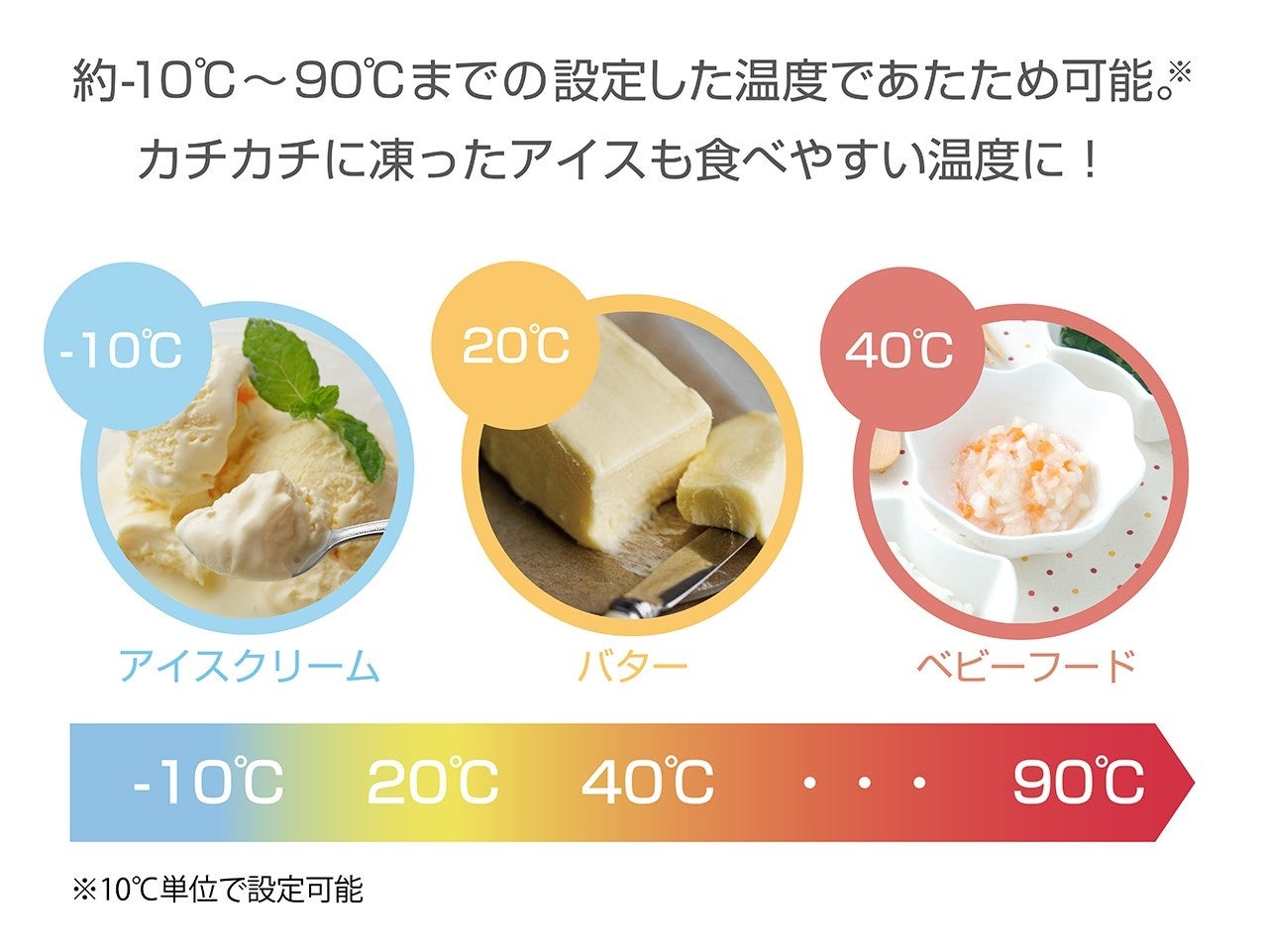 ・赤外線センサーで食材をお好みの温度にあたため可能。約-10~90℃まで対応。