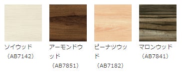 カウンター材のバイオマーブルは植物由来の原材料50%以上からできており、フェノール不使用の環境に配慮した人工大理石です。耐久性・耐熱性・耐水性にすぐれ、日常の汚れを簡単に拭き取れる耐汚染性があります。また、特殊コア紙・化粧紙にメラミン樹脂を含浸、積層して成形しているため、小口まで天然木のような自然な風合いです。前だれは小口のデザインを活かした積層デザインとカウンター面と同柄の2仕様から選択可能です。カラーは濃淡のある木目を再現した4色で、室内空間に馴染みやすく、使われるシーンによってあたたかみや高級感を演出し、空間デザインの可能性を広げます。