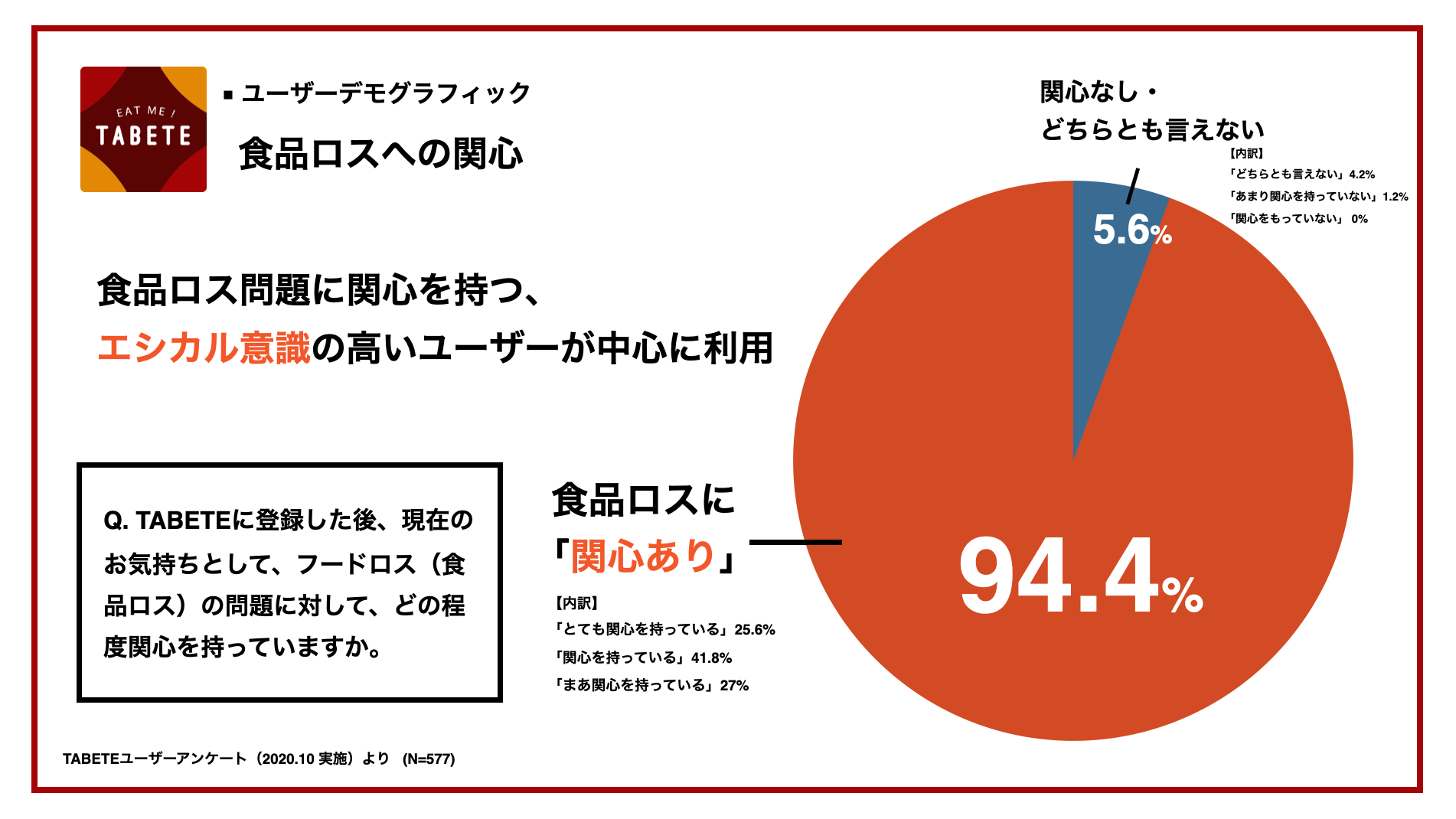 - ■「TABETE」を通して、環境意識が高いユーザー層に特化した認知促進が可能