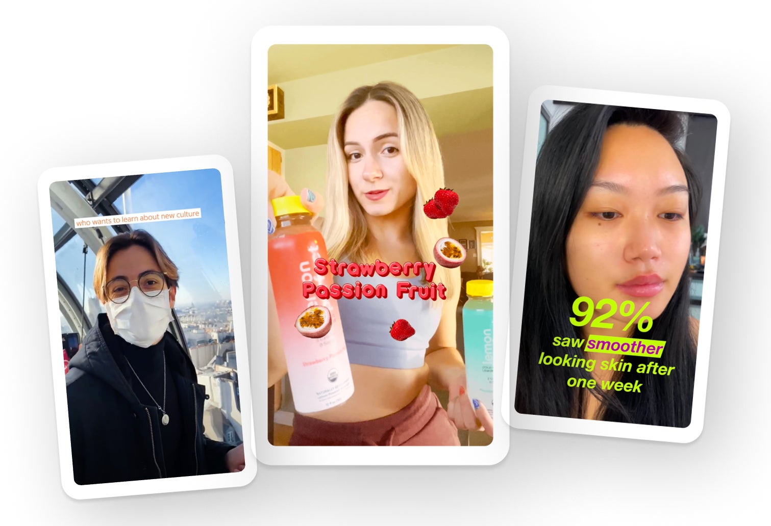 フォロワー3〜10万⼈規模のマイクロインフルエンサーを起用し、ユーザー投稿のように自然にフィードへ溶け込む15-30秒のUGC風動画を制作。大規模インフルエンサーより低コストかつ編集・二次利用の自由度が高い点が強みです。