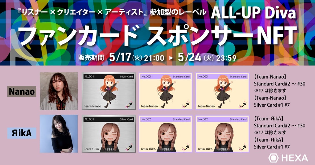 【アーティスト×NFT】第4のレーベルを目指す『ALL-UP Diva』のアーティスト「Nanao」、「ЯikA」がファンカードスポンサーNFTを販売