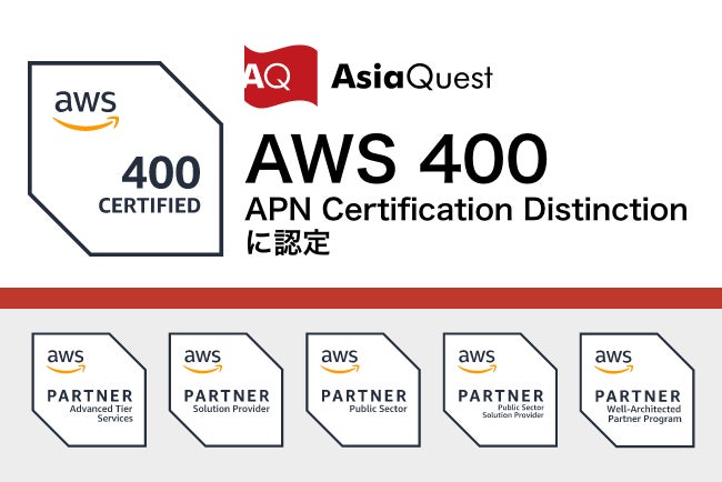 IoTやAIなどのデジタル技術を活用して企業のデジタルトランスフォーメーションを支援するアジアクエスト(本社:東京都千代田区)が、アマゾン ウェブ サービス(以下AWS)の認定資格取得数が400を超える企業として「AWS 400 APN Certification Distinction(認定数達成表彰)」認定を受けました。