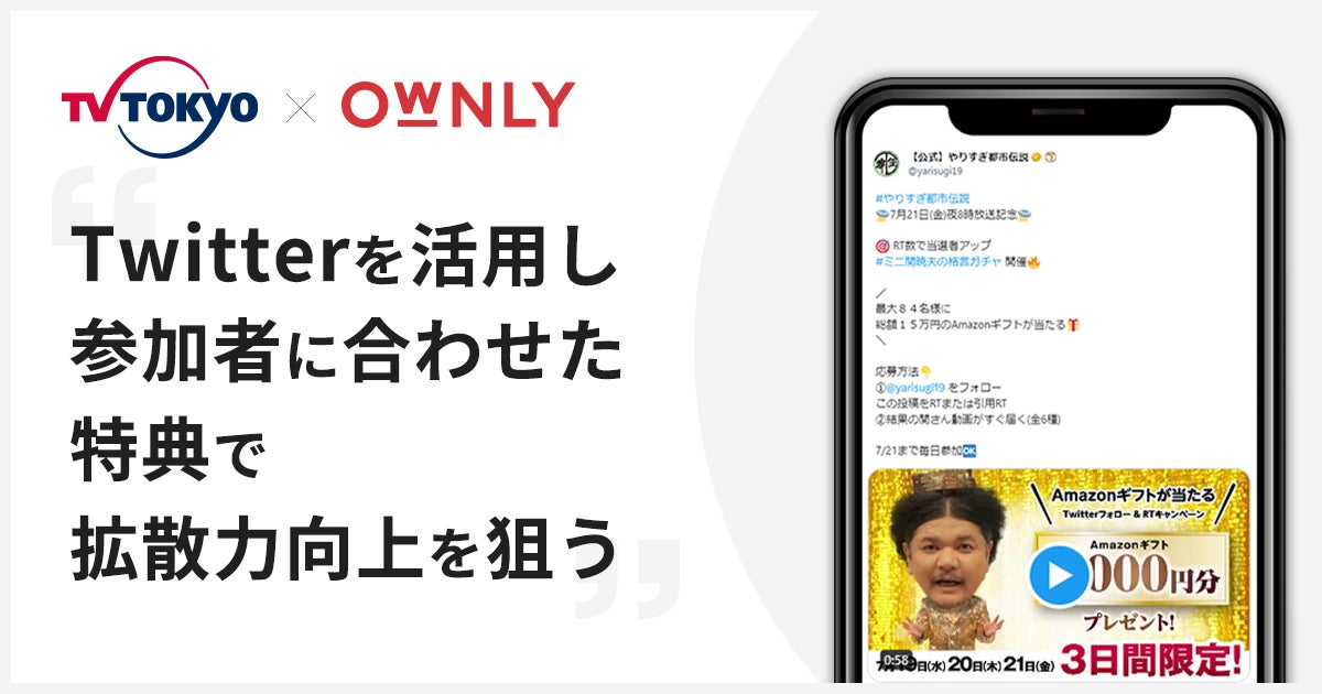 テレビ東京が「OWNLY」を活用し、放送記念キャンペーンを開催。参加者数に合わせた特典で拡散力向上を狙う。
