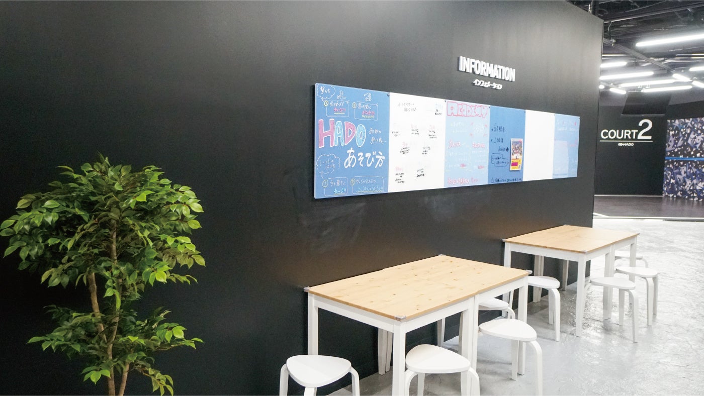 ライブ配信イベント「HADOウォーズ」や公式大会で活躍するMCブースも完備。