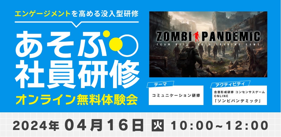 エンゲージメントを高める没入型研修「あそぶ社員研修」のオンライン体験会を企業向けに無料開催(4月16日火曜10時~)ゾンビに襲われたらどうする?をテーマにコミュニケーションを促進