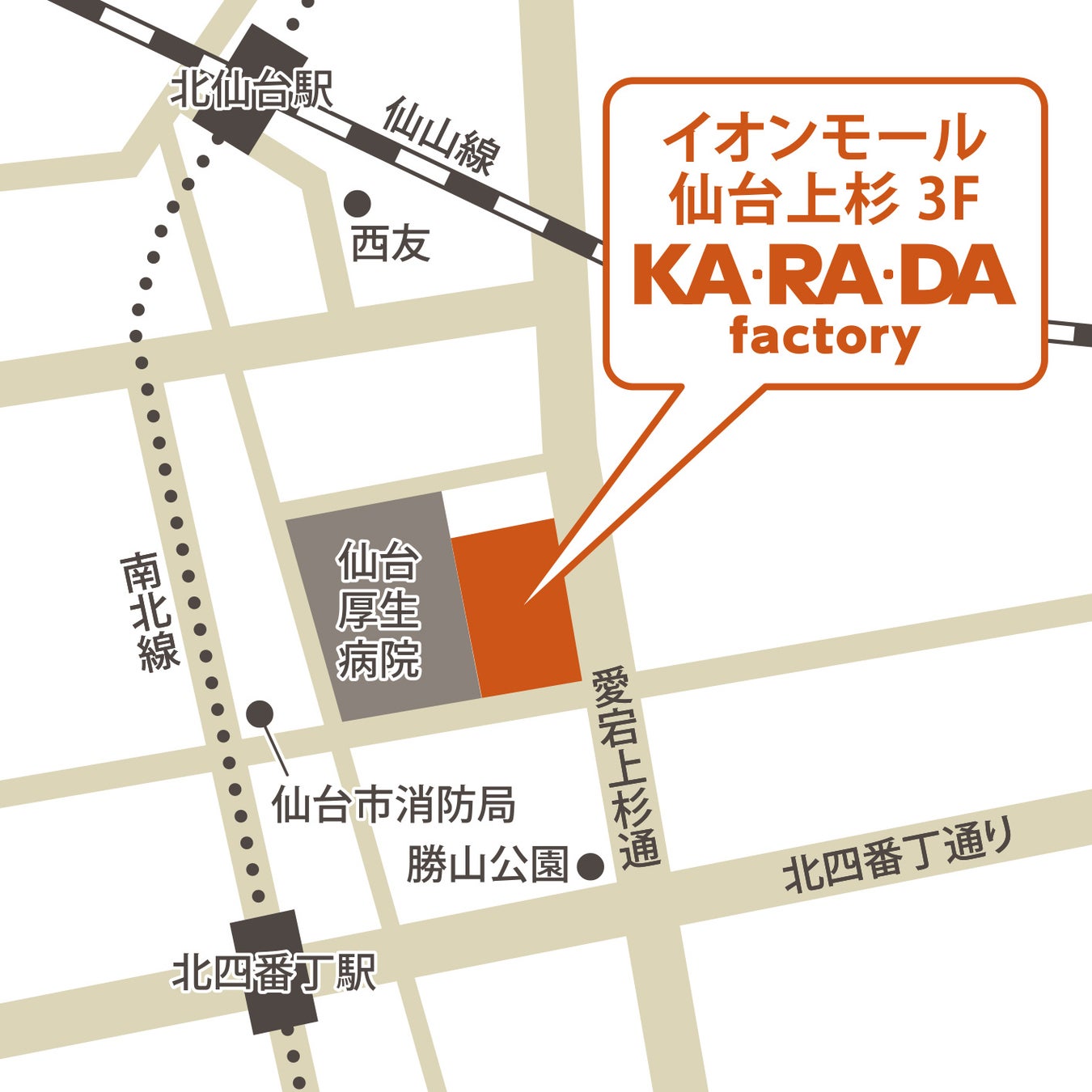 カラダファクトリーは、「イオンモール仙台上杉店」の3Fにオープンいたします。この度の開店により、宮城県仙台内にカラダファクトリー店舗は3店舗となります。