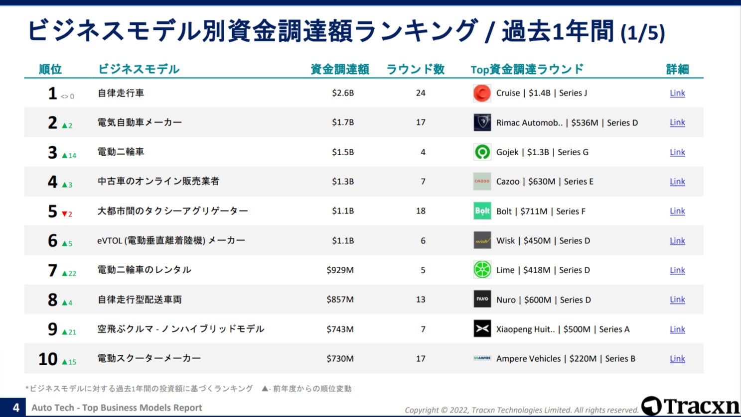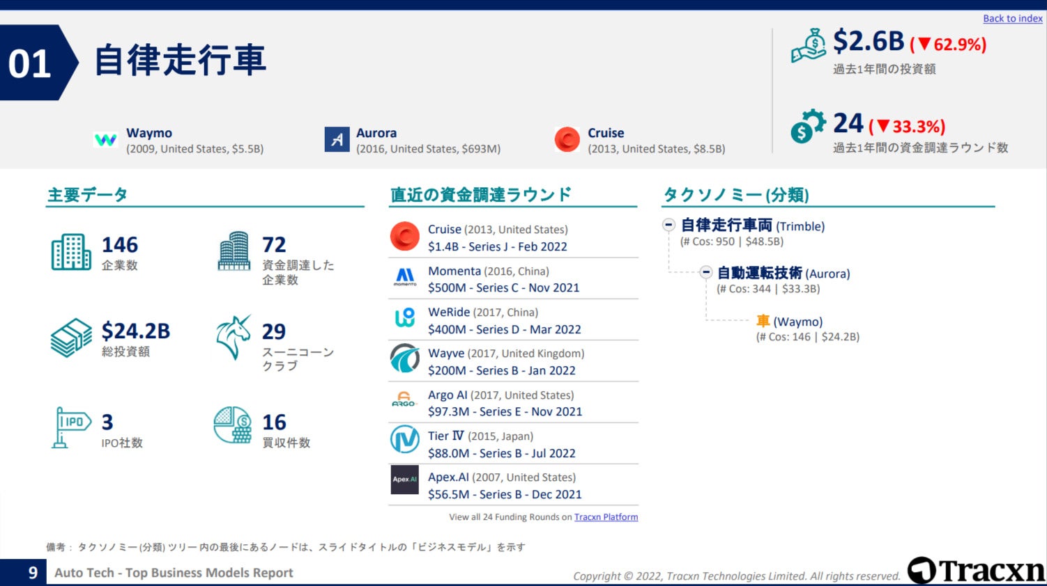 オートテックカテゴリの世界のスタートアップ資金調達動向レポートをリリース