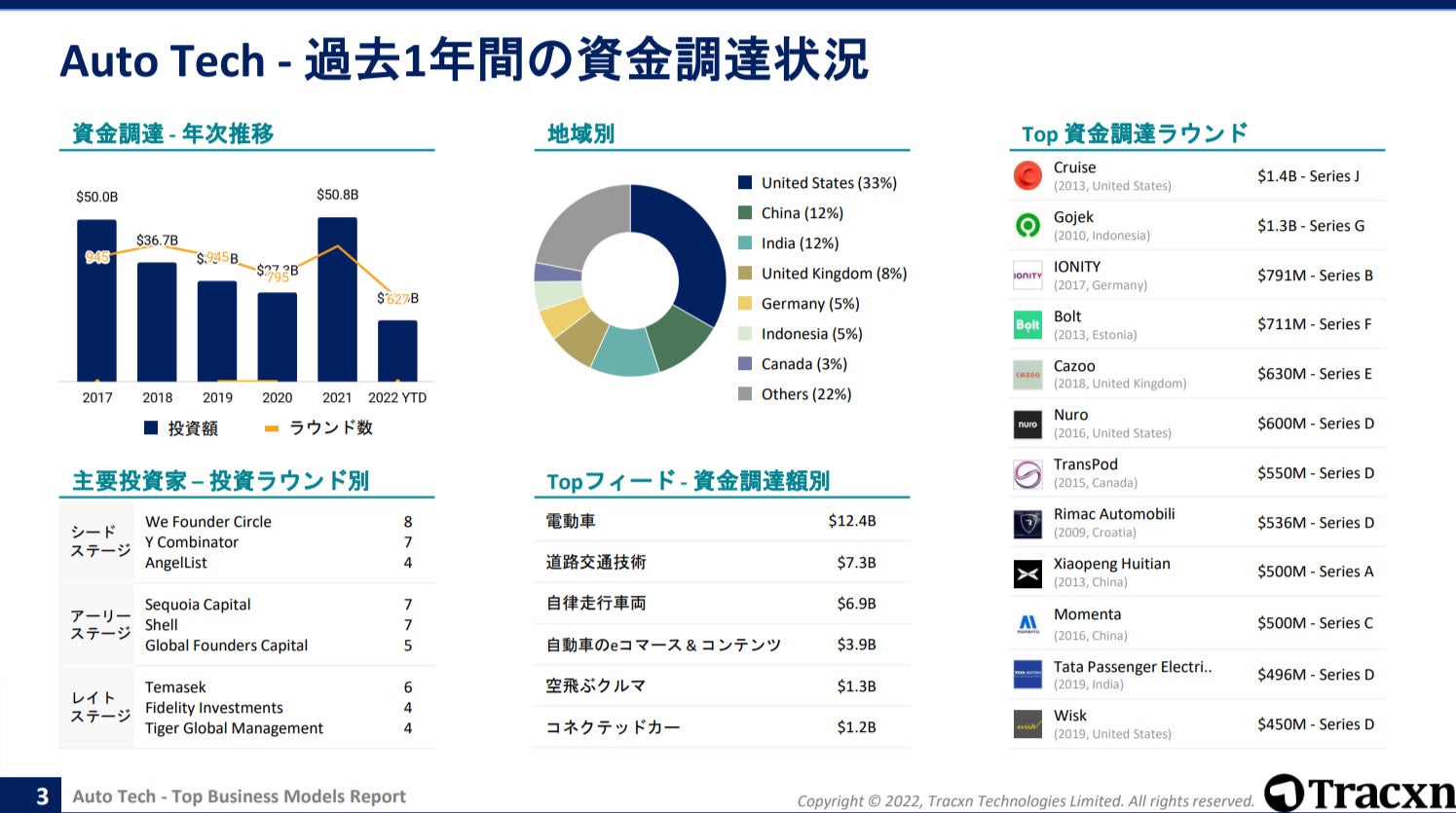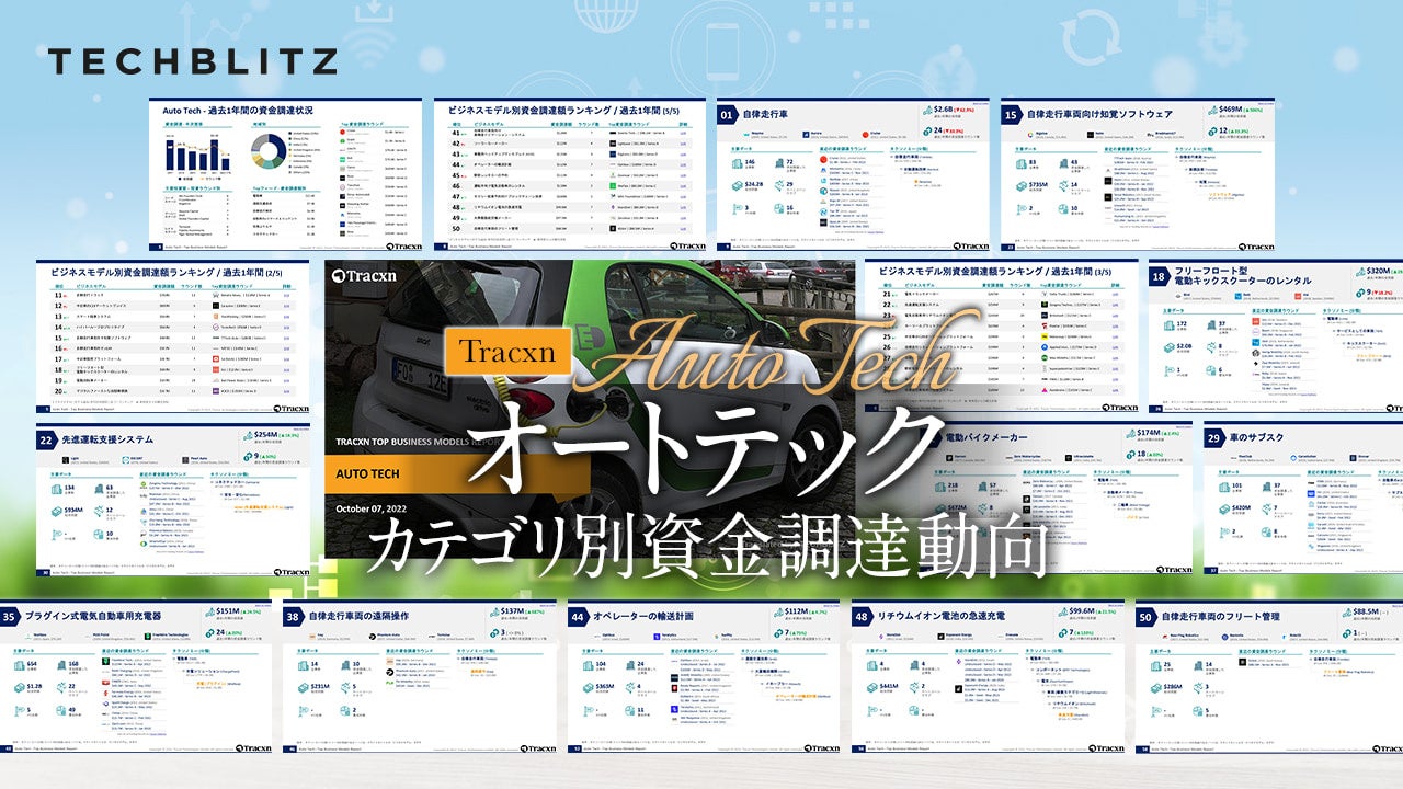Tracxnとパートナーシップを結ぶTECHBLITZは今回、「オートテック カテゴリ別資金調達動向レポート」を日本語版でリリースいたしました。