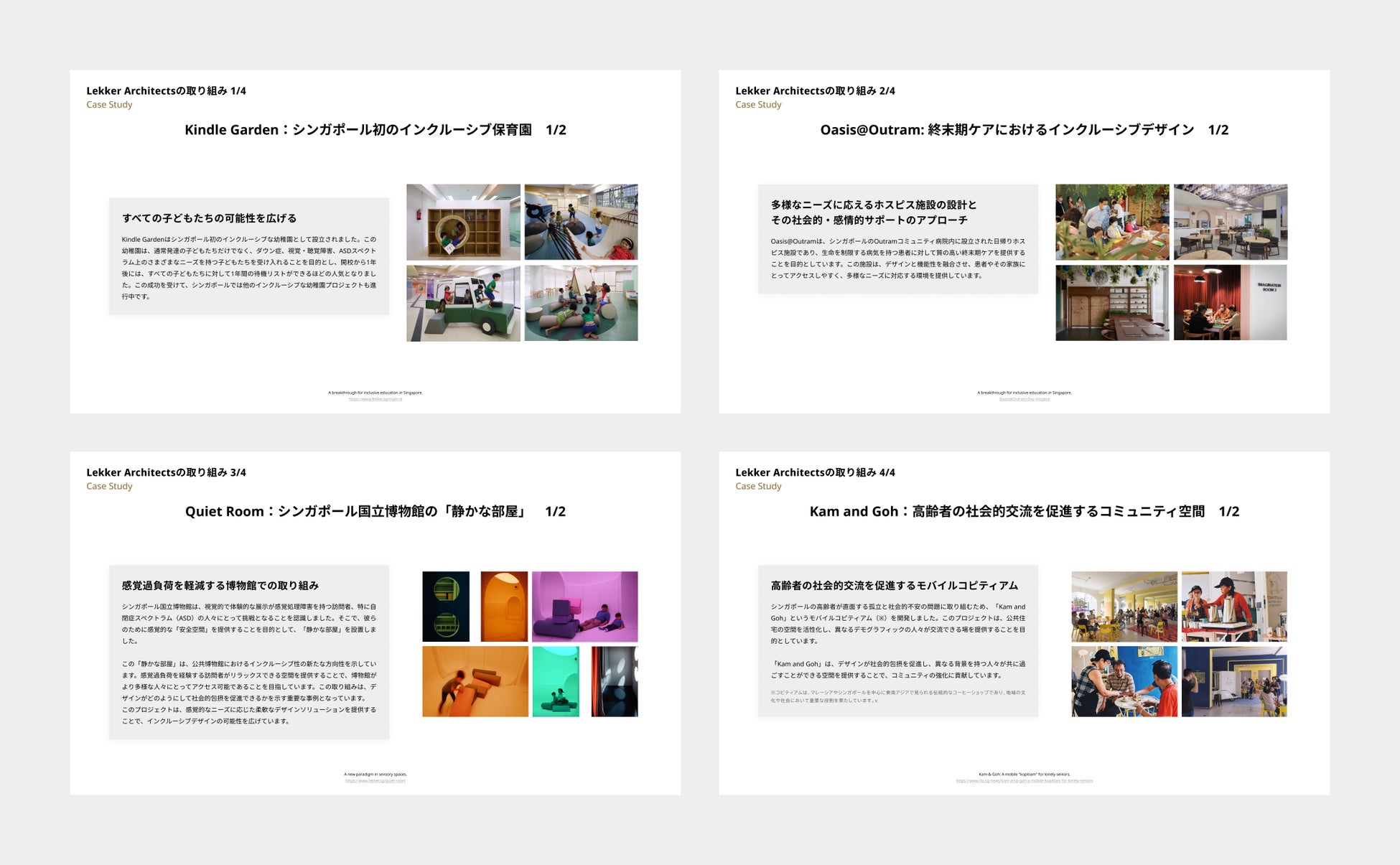 今回のリニューアル公開では、シンガポールを拠点に活動する建築設計事務所Lekker Architectsの事例をもとに、社会課題の解決策と、新しい事業の機会を模索する事業者にとって価値あるインサイトを提供します。