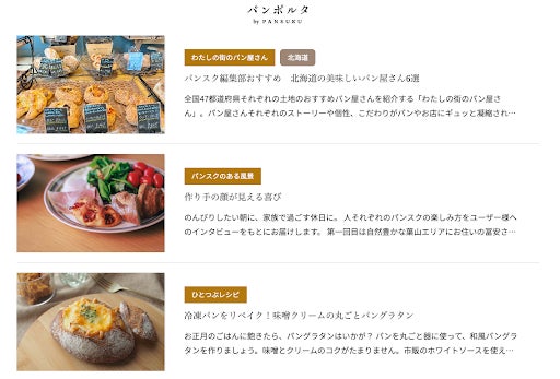冷凍パンの宅配便「パンスク」は、「おいしいパンを、旅しよう」をコンセプトに全国の美味しいベーカリーのパンを全国のみなさまに届けし、パンとの出会いを創出してきました。本日公開した『パンポルタ by PANSUKU』は、パンスクのコンセプトをより広げていき、知られざるパンの魅力をより多くの方に知ってもらい、パンのある生活を楽しんでもらうためのWEBメディアです。