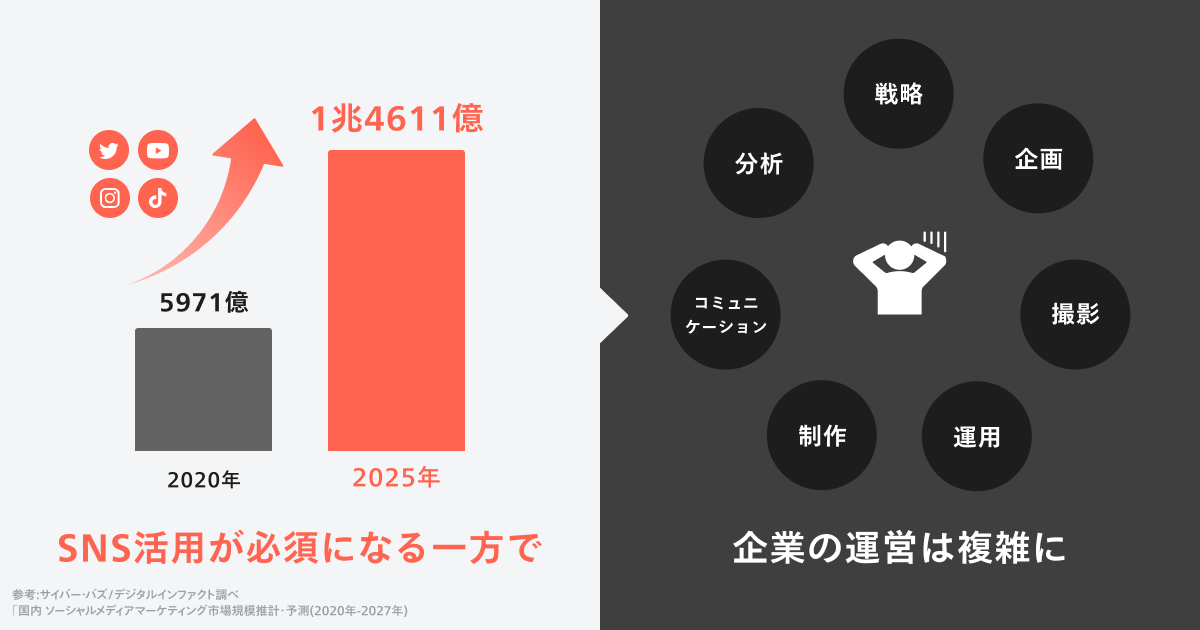 参考:サイバー・バズ/デジタルインファクト調べ「国内 ソーシャルメディアマーケティング市場規模推計・予測(2020年-2027年)」