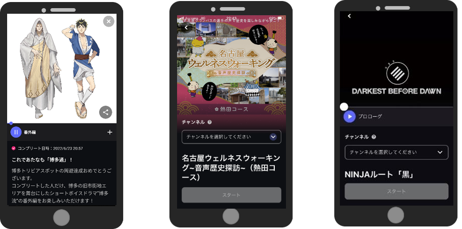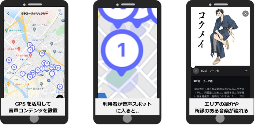 音声コンテンツは、当社が開発運用する音声ARアプリ「SARF」から、ご利用いただけます。