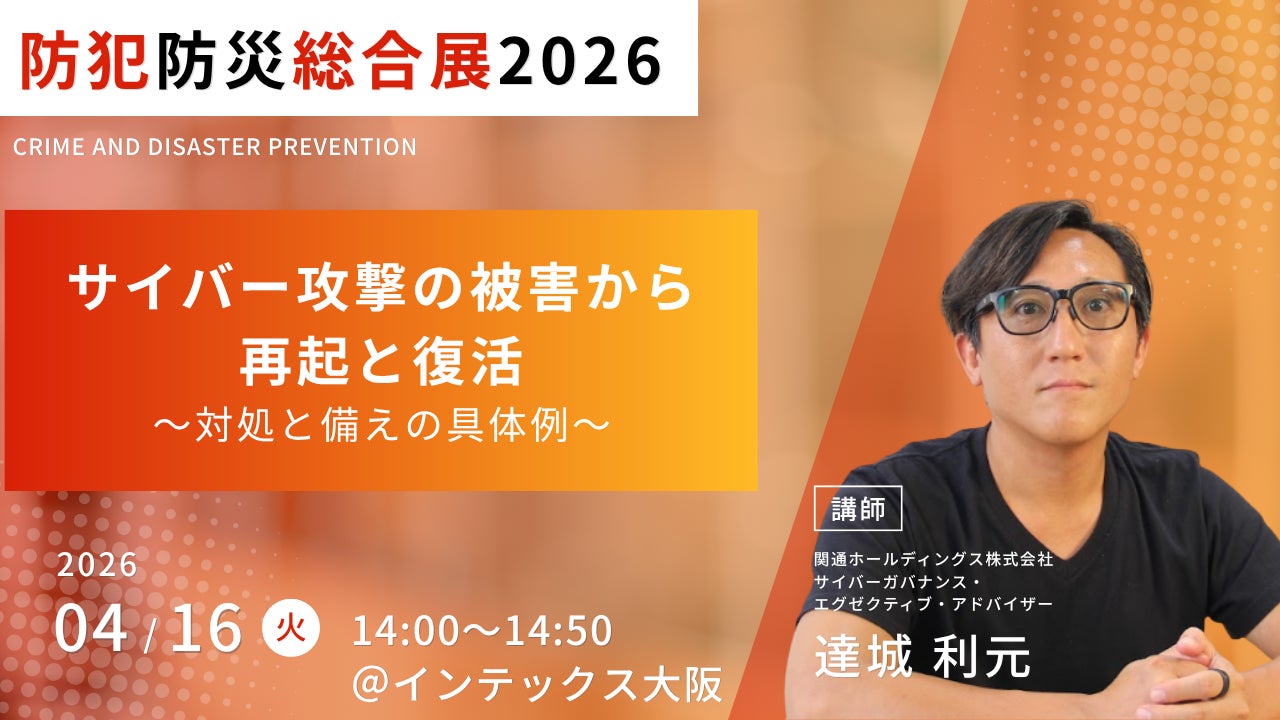 4月16日(木)インテックス大阪で開催される「防犯防災総合展2026」に関通・サイバーガバナンス・エグゼクティブ・アドバイザー達城利元がセミナー登壇