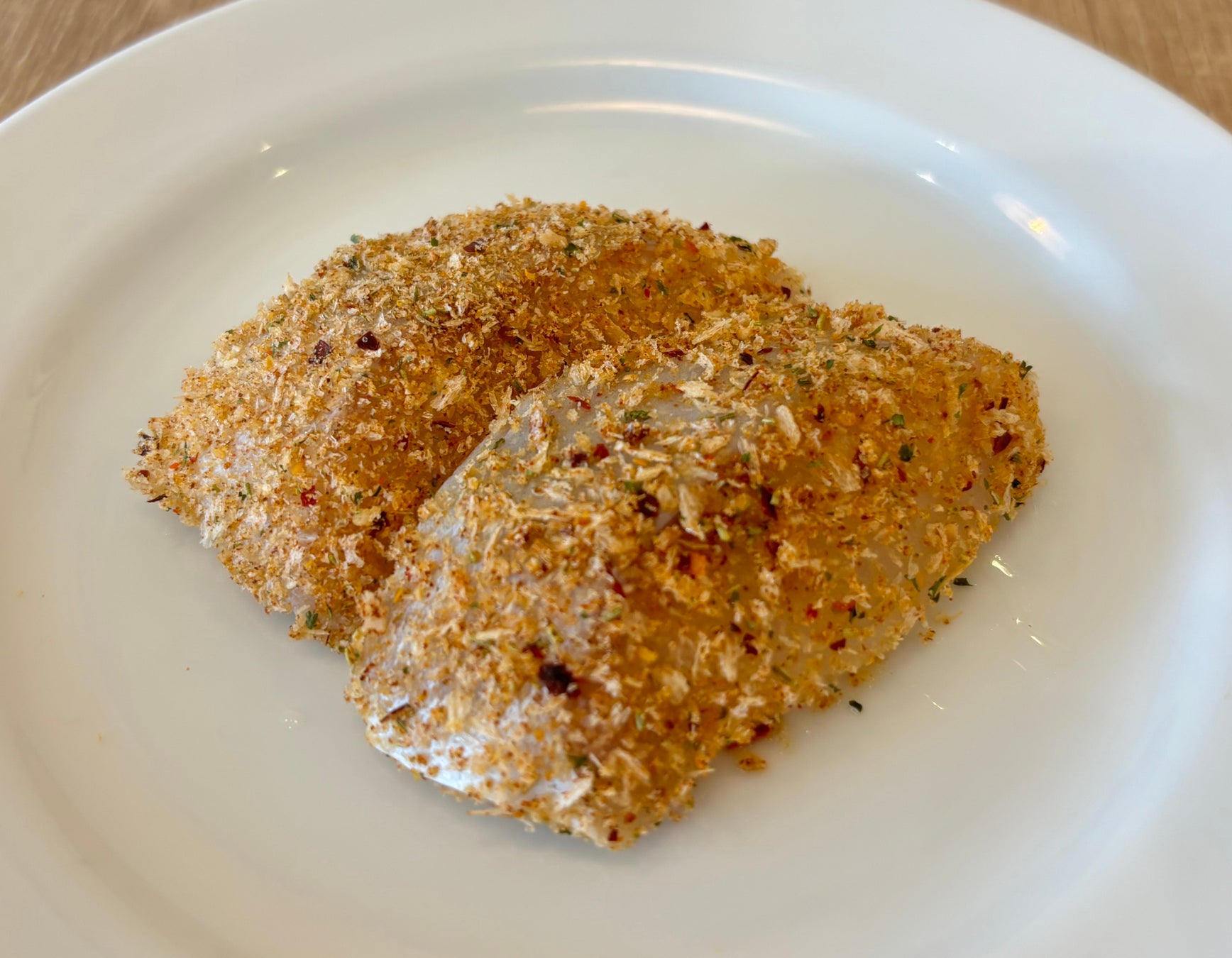 今回のメイン食材となる銀だらグリエも、店内で生の銀だらにローズマリー・パセリ・ガーリックの入った香草シーズニング入りのパン粉を丁寧にまぶし鉄板で焼き上げています。このひと手間をかけることで脂のりの良い銀だらを外はサクッと、中はふんわりとした食感でお楽しみいただけます。
