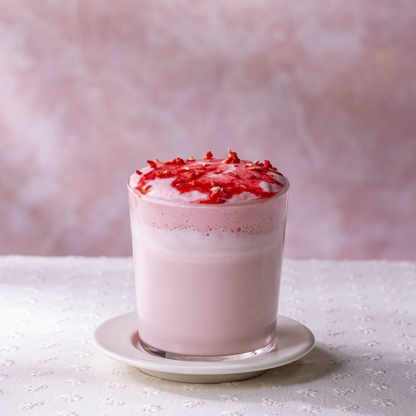 ライチとラズベリーによる果実の甘さと甘酸っぱいいちごを加えたミルクに、ローズやラベンダーがほのかに香るムースホイップをトッピング。春仕様のフロラッテをぜひご堪能ください。