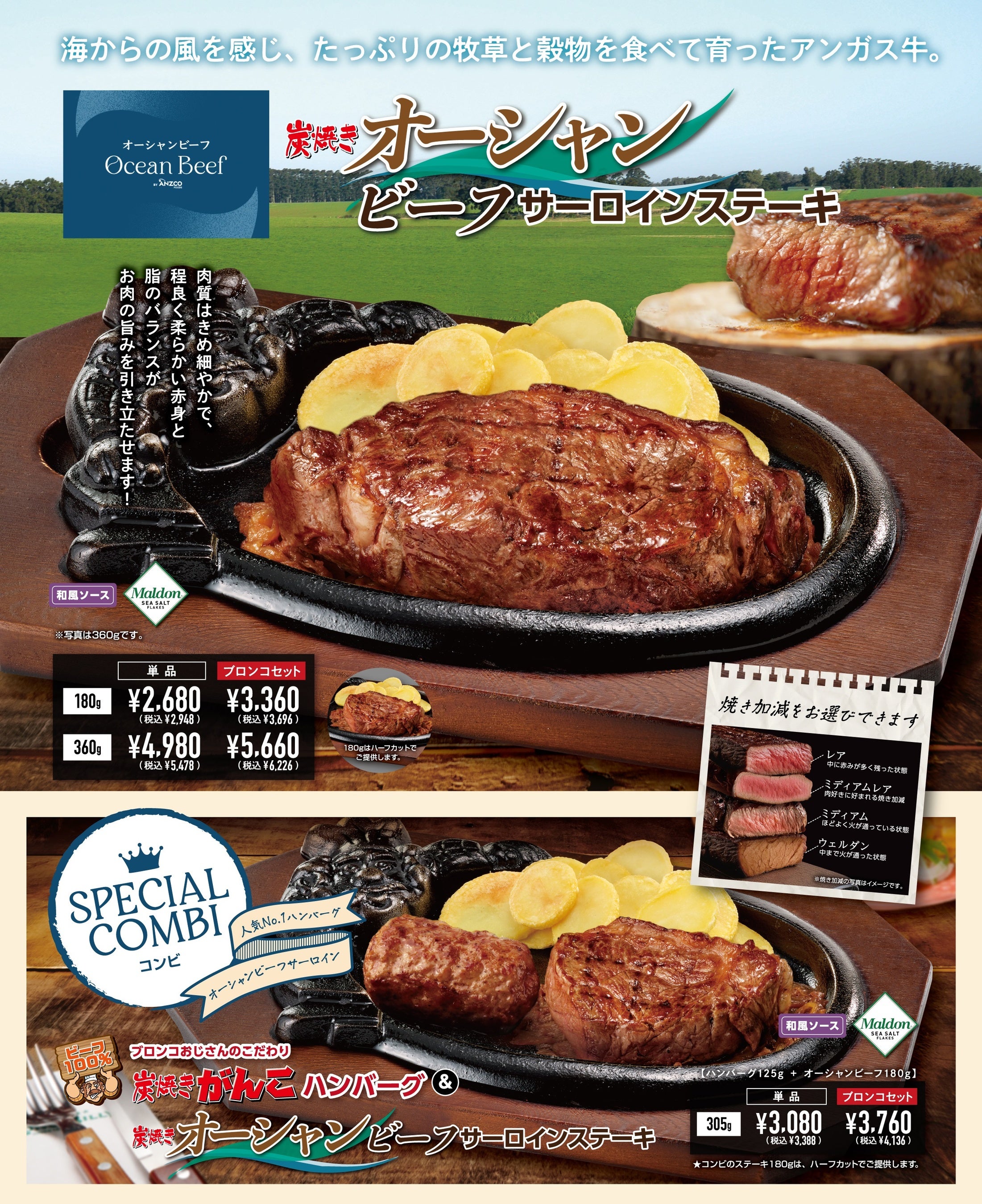 同日より ”牛肉の王様”と冠されるブランド牛 オーシャンビーフのサーロインステーキも登場!