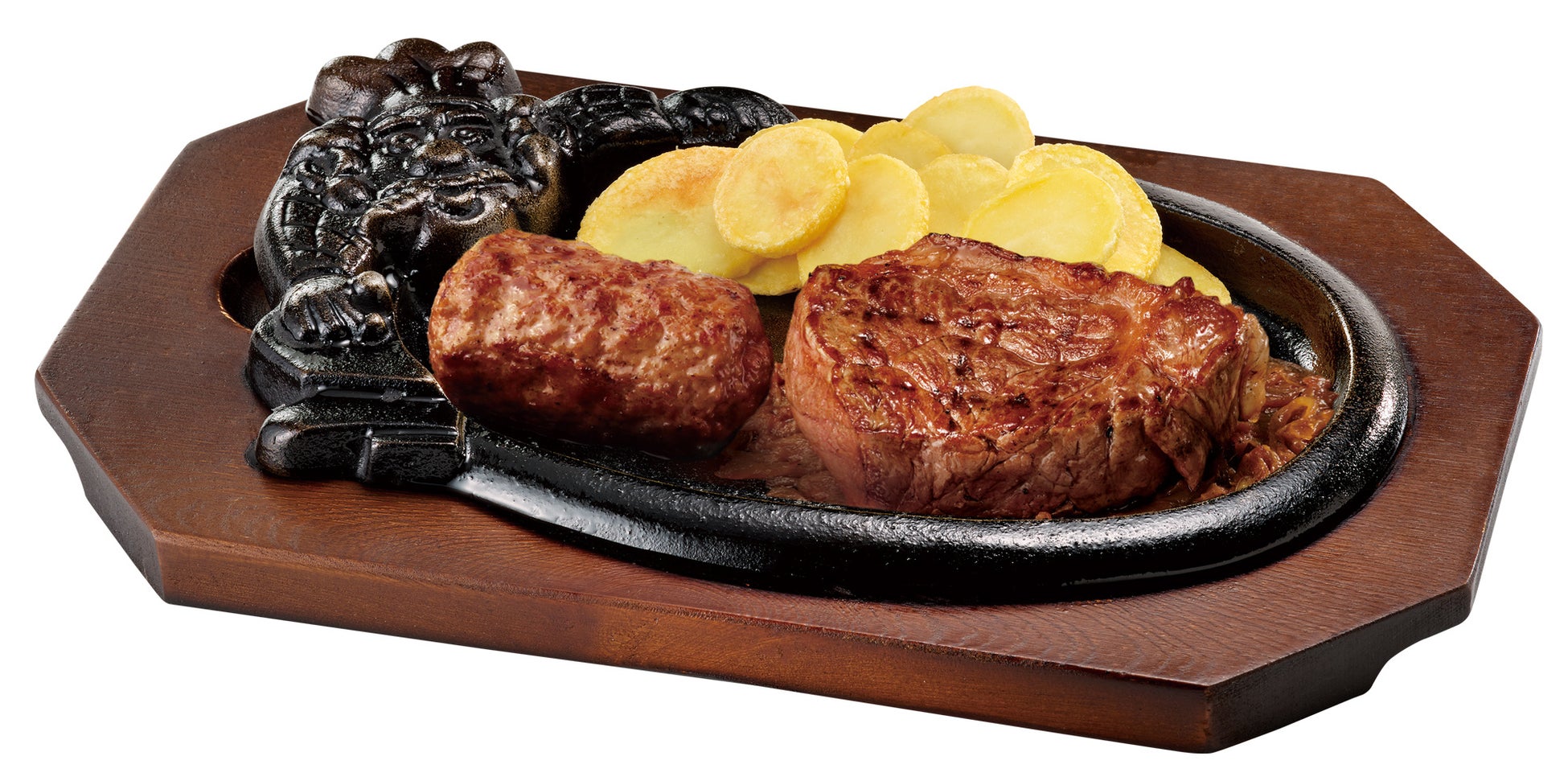▲ 炭焼きがんこハンバーグ&炭焼きオーシャンビーフサーロインステーキ