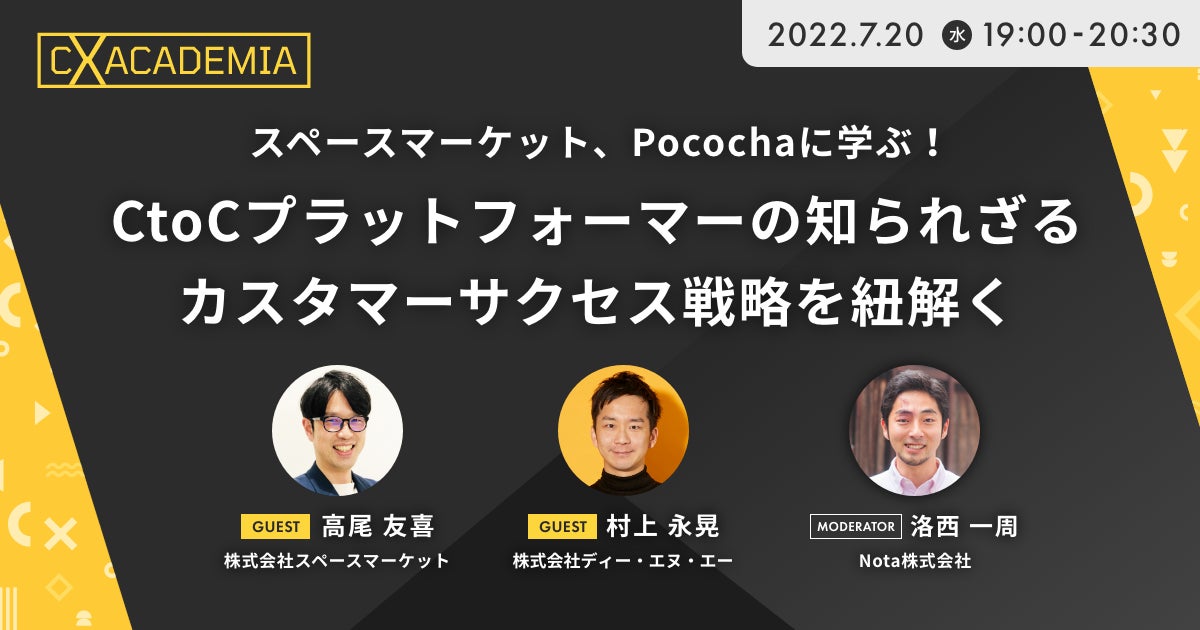 スペースマーケット、Pocochaに学ぶ!CtoCプラットフォーマーの知られざるカスタマーサクセス戦略を紐解く【2022/7/20@オンライン/先着150名限定】