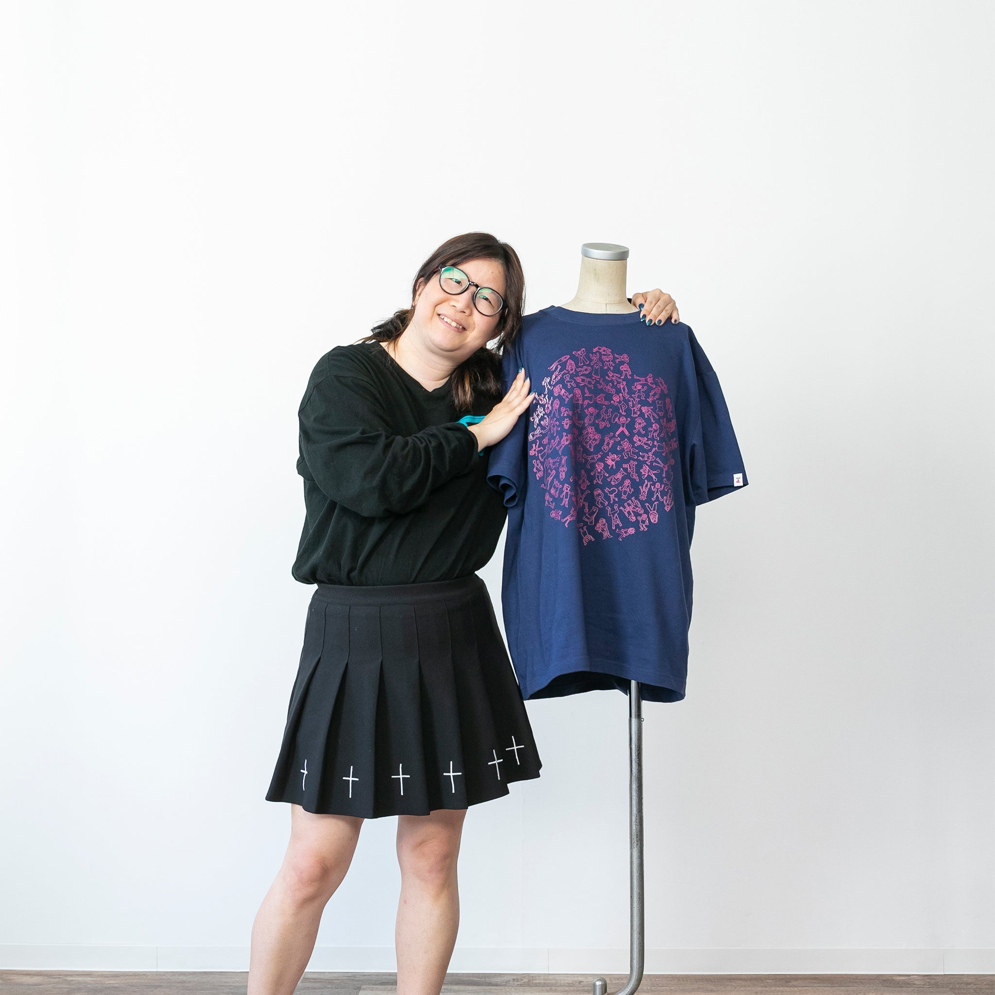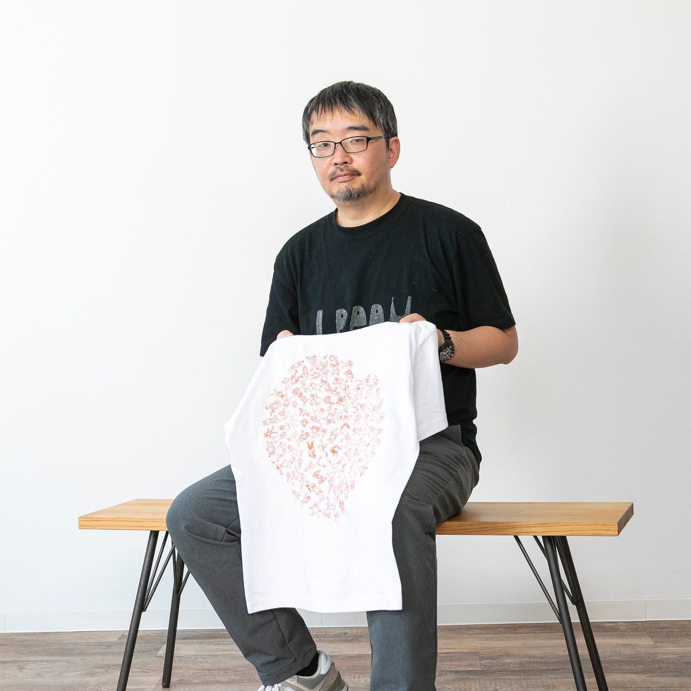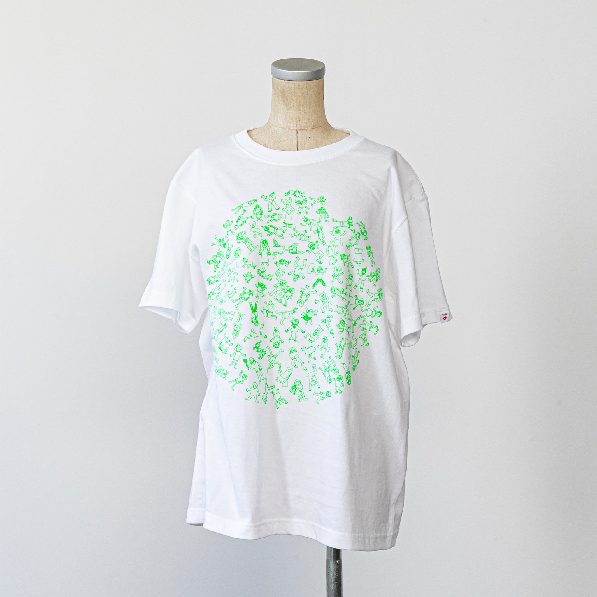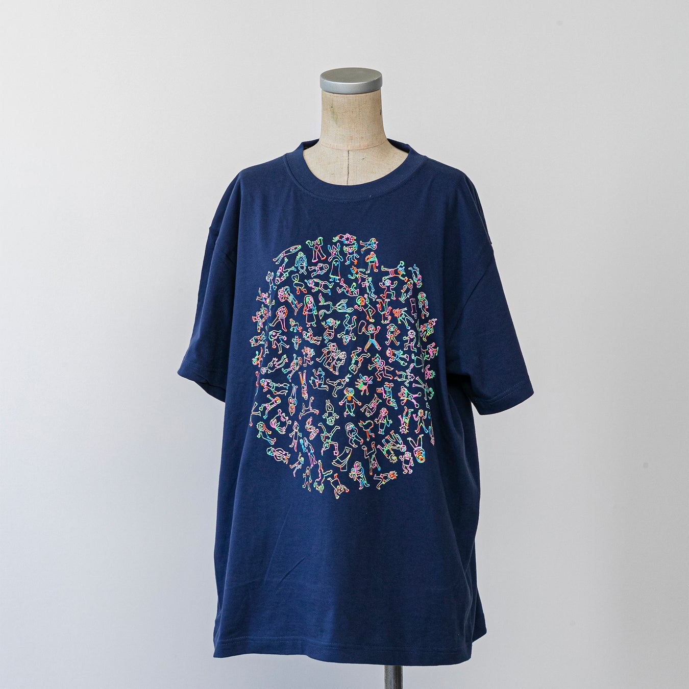 PICFA施設で初めて描いた笠原さんの原画「楽しいひと時」をもとに、1点1点アーティスト自らカラー配色や配置を創造し、シルクスクリーンで作り上げたTシャツです。