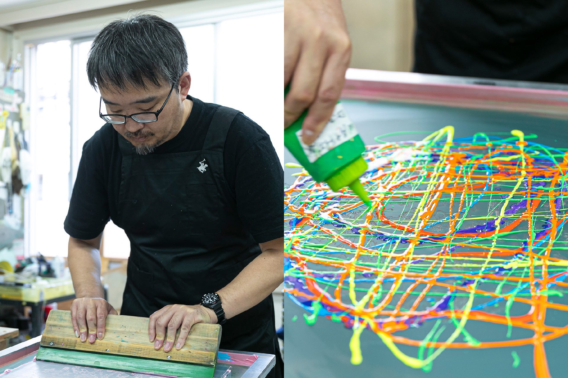 シルクスクリーン工房にてインクを配色、アーティスト自らの手で1点1点手刷りした限定品となります。