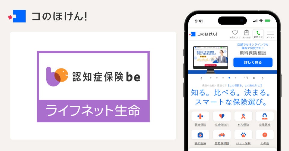 コのほけん!に掲載を開始した認知症保険「be」はインターネットでお申込みいただけます。コのほけん!PCサイトおよびスマートフォンサイトにて、商品の詳細をご覧ください。