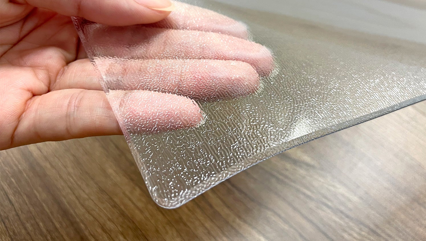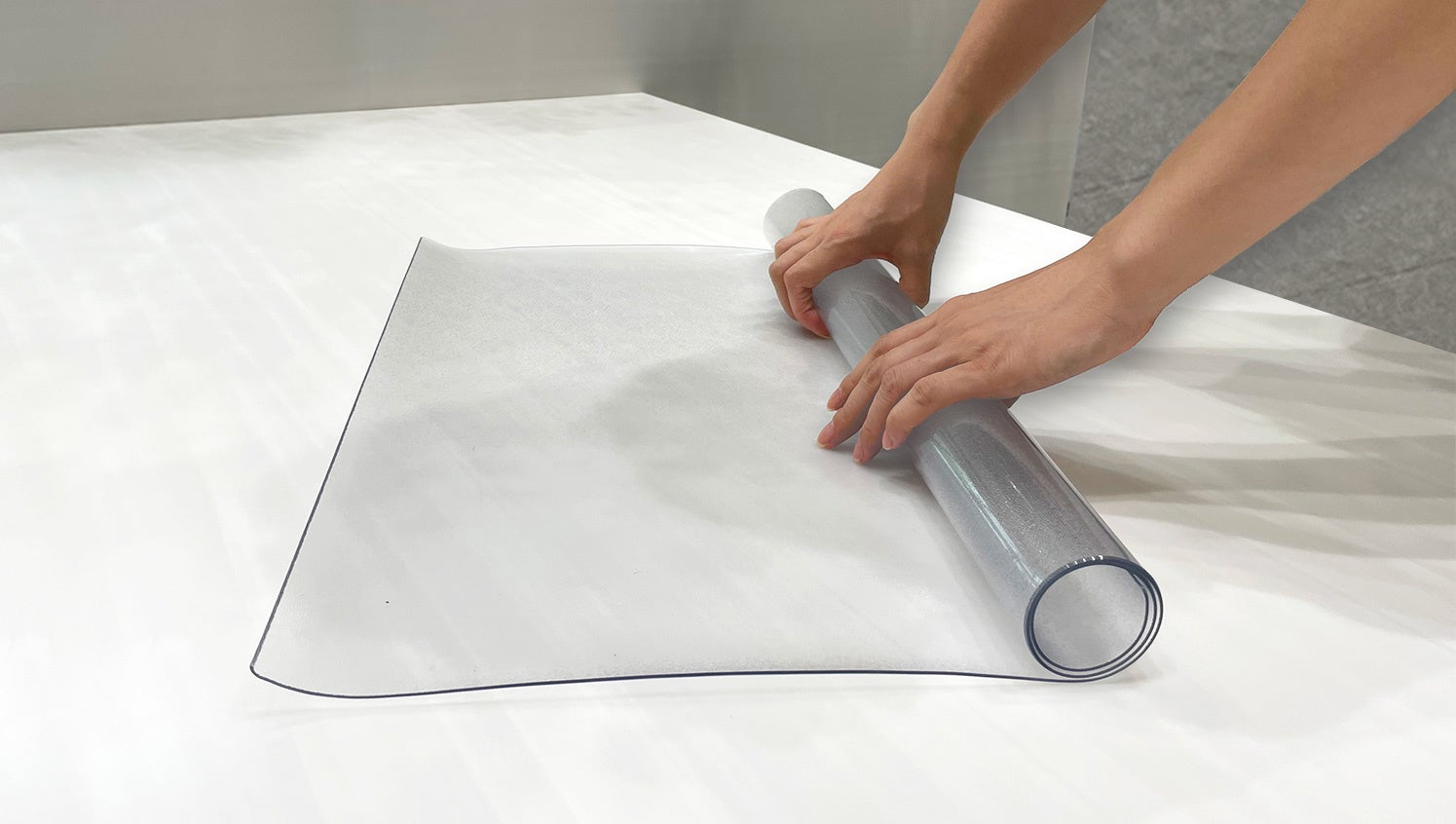 耐水性のため汚れてもふき取るだけで手軽にお手入れができます。水漏れなどによるカビ対策にもおすすめです。床側にはエンボス加工を施しており、摩擦力が強く滑りにくい仕様です。また半透明で床馴染みも良いデザインです。