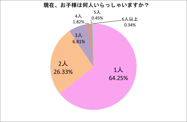 会員ママ881名を対象に現在の子どもの人数を尋ねたところ、「1人」(64.25%)「2人」(26.33%)という結果となり、アンケート回答者の約9割が「子どもは2人以下」ということがわかりました。