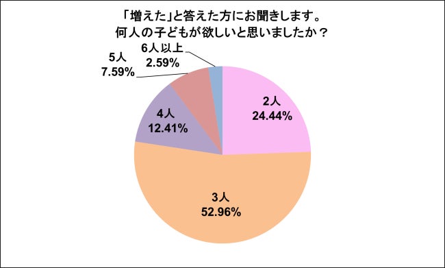 今回、実施した意識調査では、ベビーカレンダー独自の分析・考察から導いた仮説のとおり、出生数減少の要因には「経済的理由」があり、経済支援制度が実際に充実していたなら、「希望する子どもの人数が増える」ということが明らかになりました。