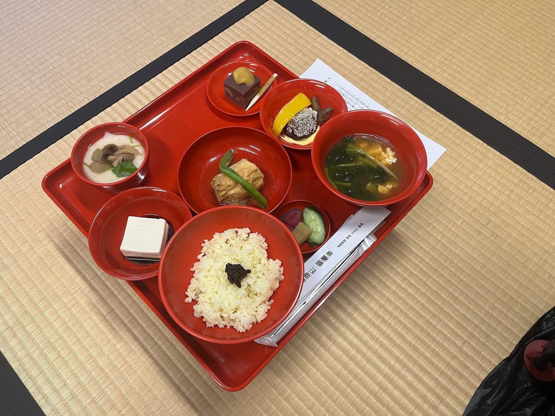 希望者には、事前にオプションでお申し込みいただいた「精進料理」もお楽しみいただきました。