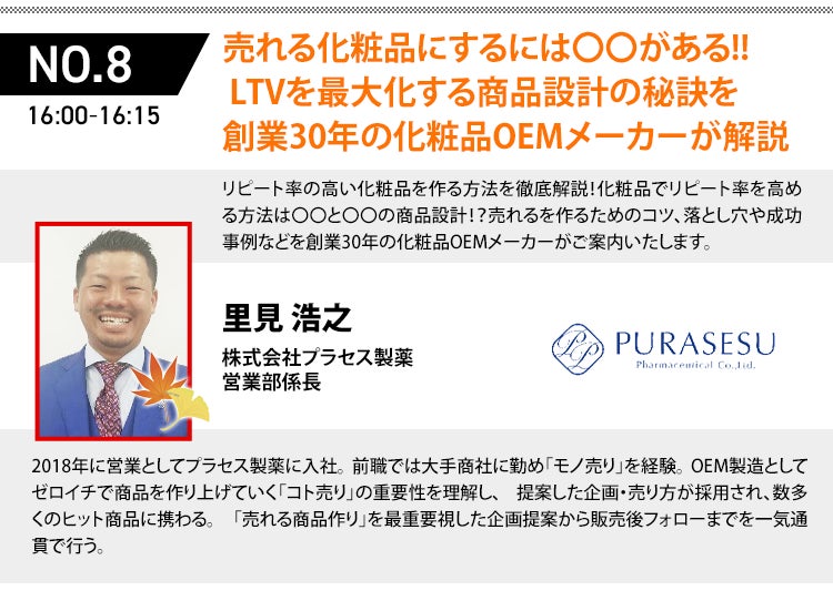 広告戦略・商品開発ブランディング・LTV・P2Cなどなど、D2Cの売上をアップさせる幅広い知識と実践ノウハウが大公開されます。