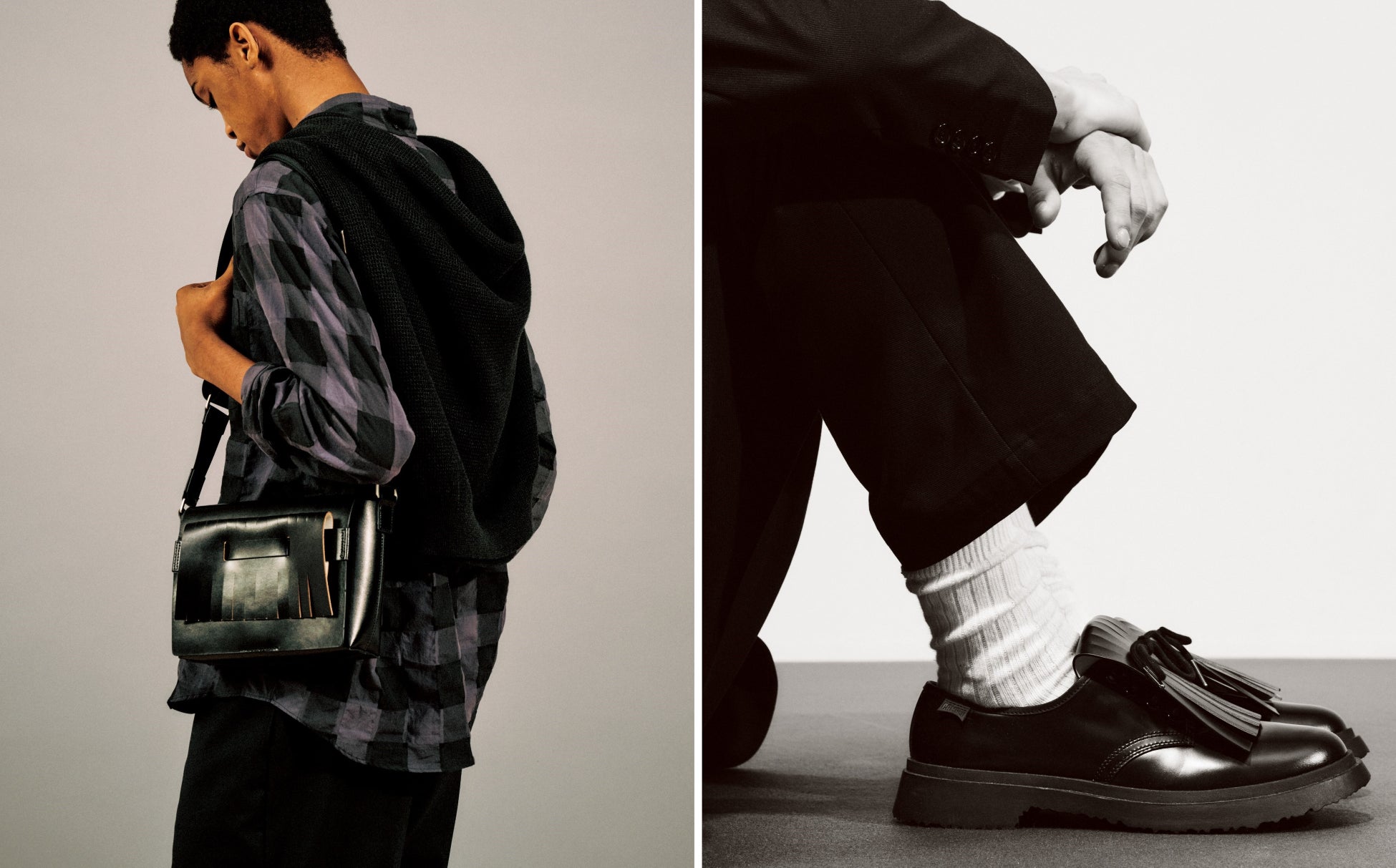 初となる今回のコラボレーションでは、ミニマムなデザインを軸に“都市生活における快適なリアルクローズ”を展開している「SOPHNET.(ソフネット)」らしさと、カンペールのクラフトマンシップが光るシューズとバッグを発表。洗練されたモノトーンの上質なレザーを採用し、タイムレスに使えるデザインに仕上げました。アクセントになるロングキルトを付け、ミニマムながら3WAYで使えるカプセルコレクションとして登場します。