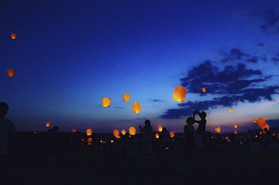 19:00 みんなで一斉にスカイランタンを空に浮かべます