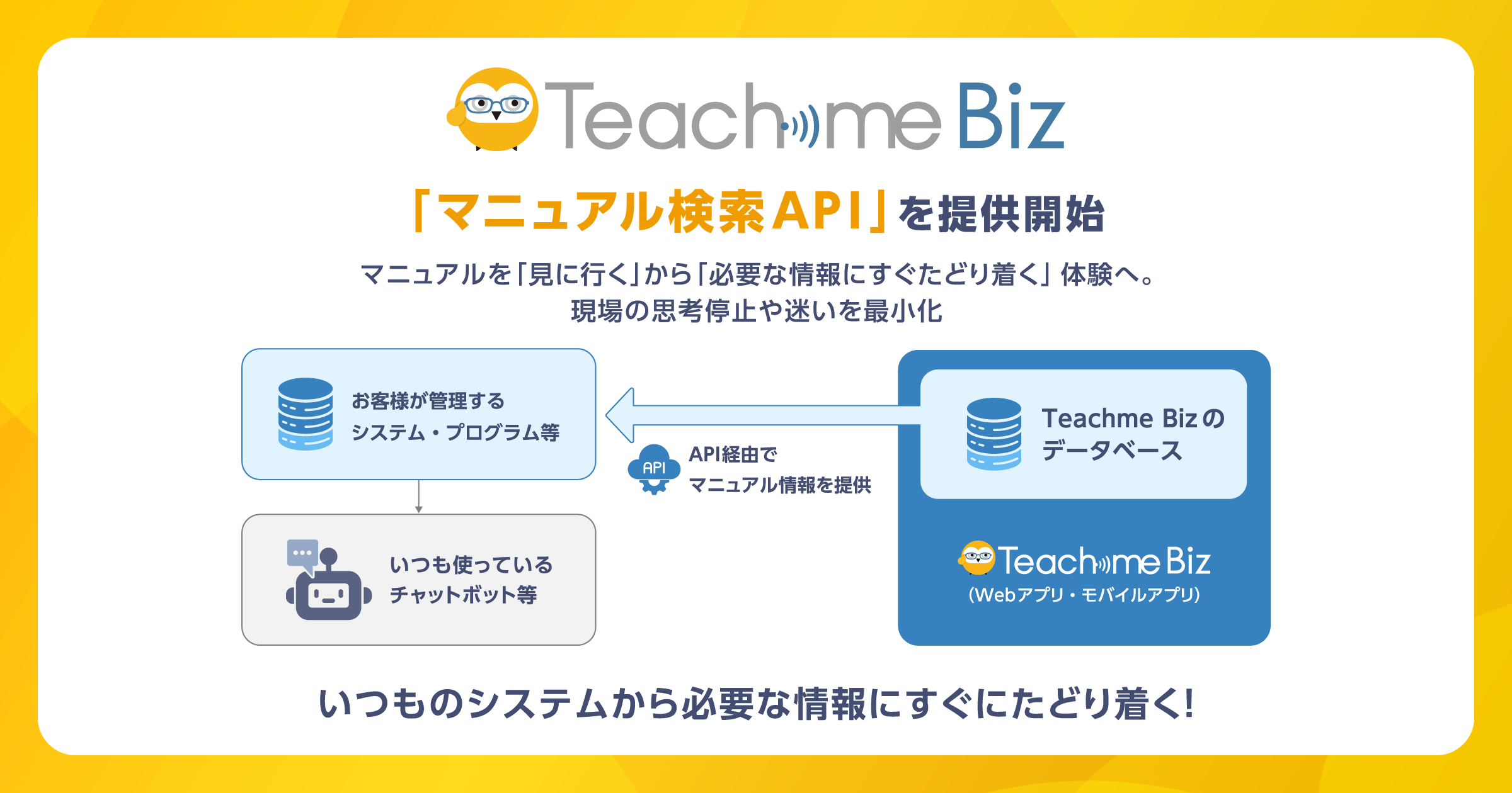 Teachme Biz、「マニュアル検索API」を正式提供開始