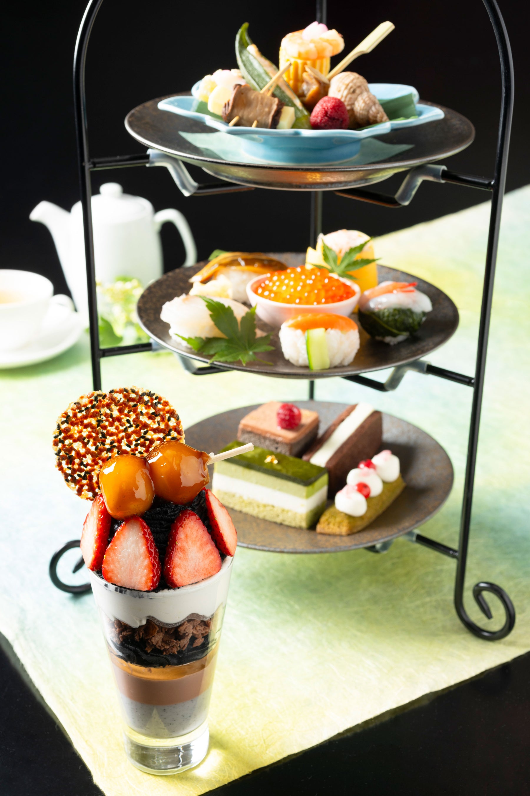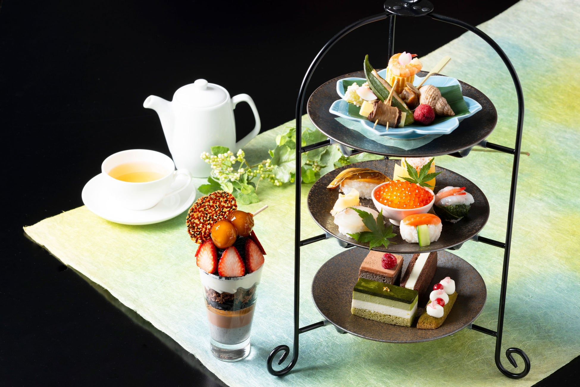 和風テイストのスイーツと和のセイボリーが楽しめる【和(なごみ)のアフタヌーンティーセット】