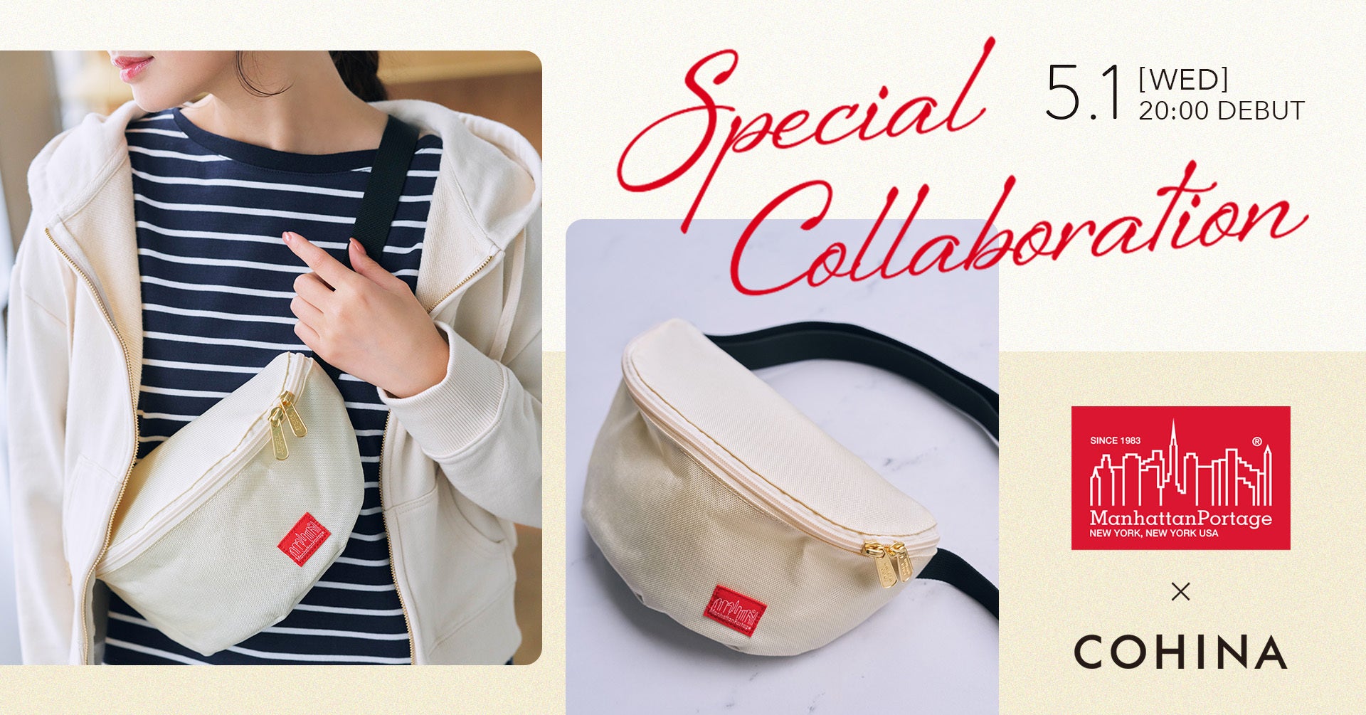 株式会社newn(本社:東京都渋谷区、代表取締役:中川 綾太郎)が展開する、身長150cm前後の小柄女性に向けたアパレルブランド「COHINA(コヒナ)」は、NY発の人気ブランド「Manhattan Portage(マンハッタンポーテージ)」とコラボレーションした別注ボディバッグを、2024年5月1日(水)20:00より公式オンラインストア COHINA STOREにて発売します。