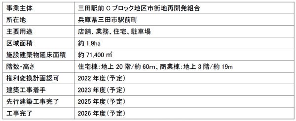 阪急阪神不動産株式会社(本社:大阪市北区、社長:諸冨 隆一(※1))と旭化成不動産レジデンス株式会社(本社:東京都千代田区、社長:兒玉 芳樹)は、両社が参加組合員として参画している「三田駅前Cブロック地区第一種市街地再開発事業(以下、「本事業」)において、兵庫県知事より組合設立の認可を受け、12月18日に「三田駅前Cブロック地区市街地再開発組合」(以下、「本組合」、理事長:吉本 尚登)が設立されたことをお知らせいたします。