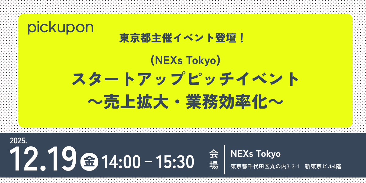 【12月19日(金)開催】東京都主催「NEXs Tokyo スタートアップピッチイベント~売上拡大・業務効率化~」にpickupon株式会社の登壇決定!