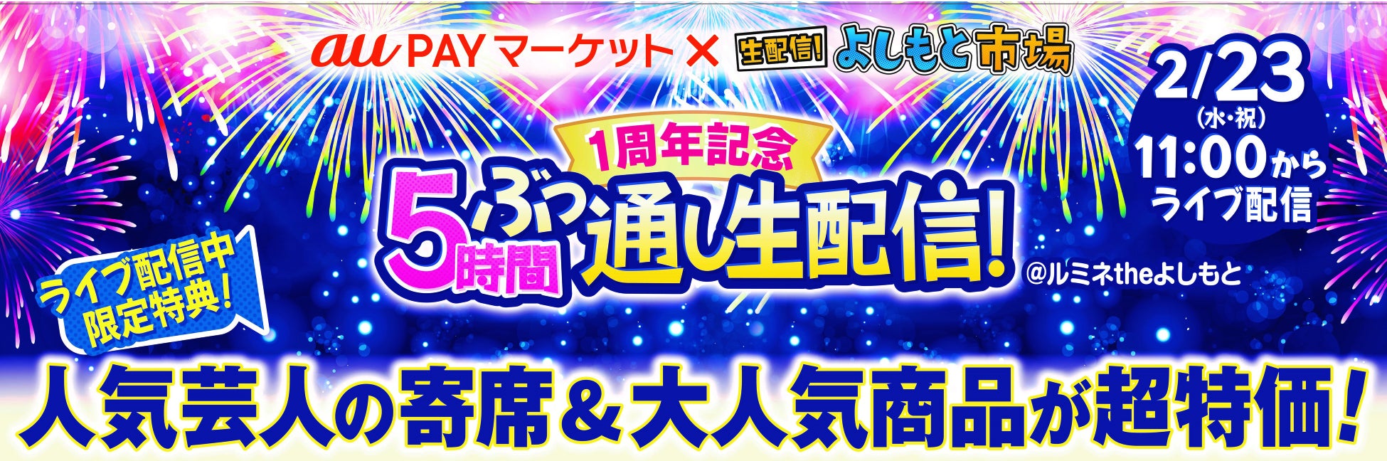 <2/23(水・祝)生配信!よしもと市場「 1周年大感謝祭5時間ぶっ通し生配信!」概要>